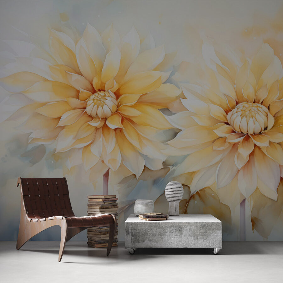Trasformate qualsiasi spazio con questo splendido murale con fiori vivaci su un morbido sfondo bianco. È come invitare un allegro giardino a casa vostra! Immaginate di svegliarvi con queste splendide fioriture, i cui petali giallo caldo illuminano anche le giornate più uggiose. Non è solo un arredo, è un piccolo pezzo di natura che porta gioia e tranquillità. Perfetto per un salotto accogliente o una camera da letto serena, questo murale sussurra “relax” con le sue morbide vibrazioni acquerellate. Chi non vorrebbe sognare ad occhi aperti davanti a queste bellezze? Inoltre, i vostri amici potrebbero pensare che avete un pollice verde segreto!