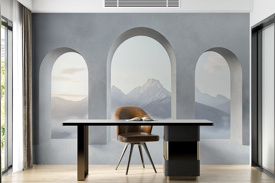 Trasformate qualsiasi spazio con questo splendido murale che ricorda un’accogliente fuga nella natura. Immaginate di svegliarvi, con il caffè in mano, guardando attraverso eleganti finestre ad arco le maestose montagne, dolcemente avvolte dalla nebbia. È come portare la tranquillità dei grandi spazi aperti nel vostro salotto, senza bisogno di scarponi da trekking! Sia che si tratti di un angolo di lettura tranquillo o di un’area lounge aperta, questo murale aggiunge una ventata di aria fresca. Perché non lasciare che le montagne ispirino sogni ad occhi aperti e momenti di pace? È la natura al suo meglio, senza bisogno di protezione solare!