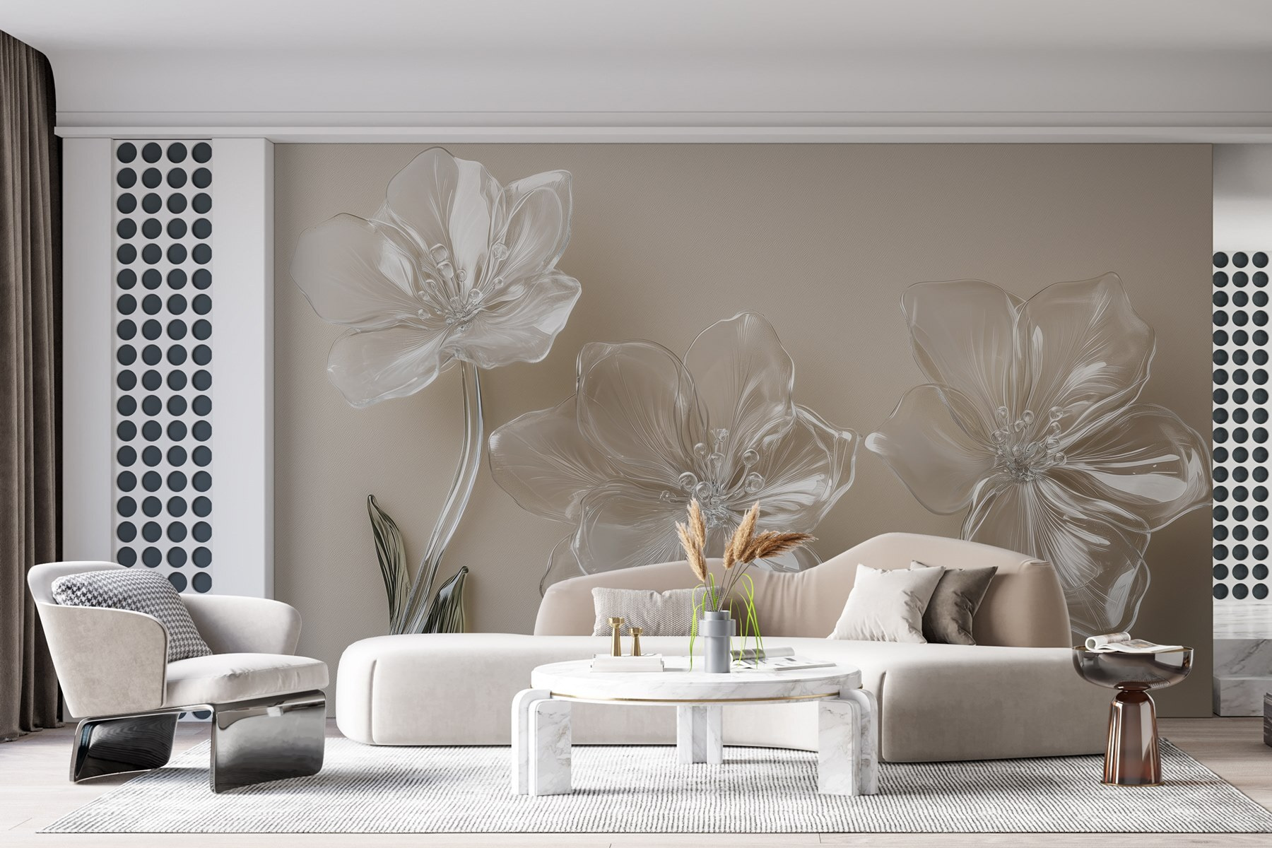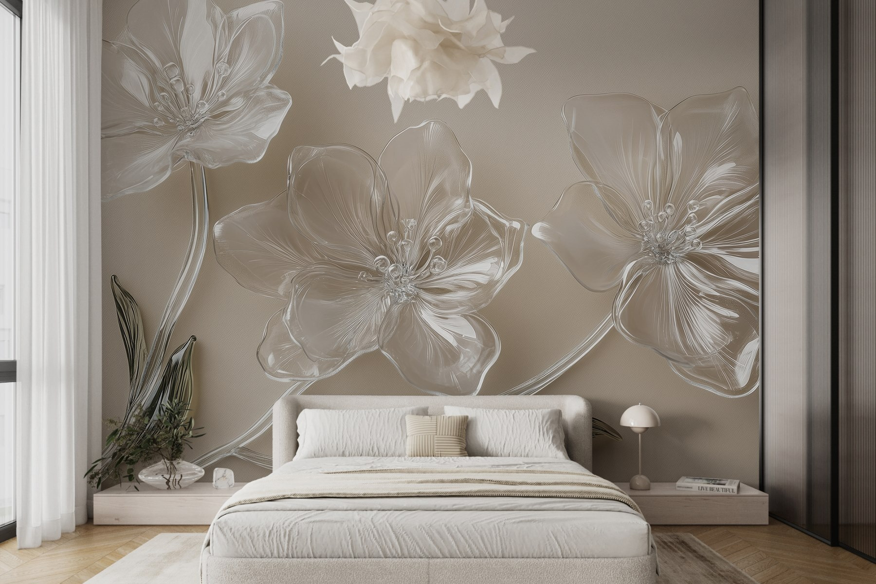 Trasformate qualsiasi spazio con l’incantevole bellezza del murale “Fiori di vetro su superficie bianca”. Queste deliziose fioriture sembrano fluttuare sulle pareti, portando un tocco di natura all’interno dell’abitazione senza il fastidioso polline. Immaginate di sorseggiare il vostro caffè mattutino circondati da questi petali morbidi ed eleganti: è come avere un giardino che fiorisce tutto l’anno! Perfetto per ravvivare un salotto o per aggiungere un tocco speciale a un angolo accogliente, questo murale invita al calore e alla creatività. Pensate a come i vostri amici si complimenteranno con il vostro stile quando vedranno questo splendido pezzo!