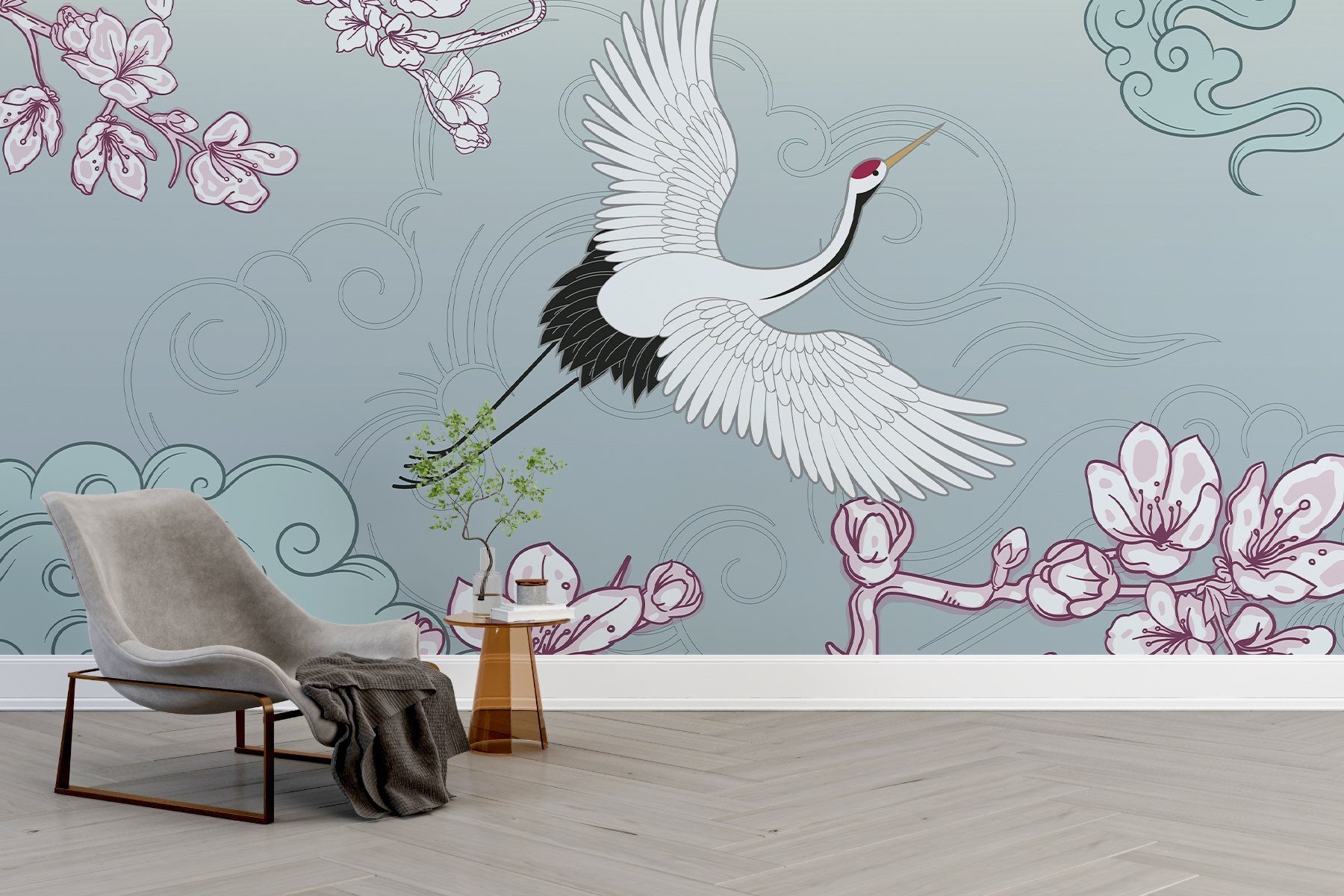 Trasformate il vostro spazio con questo incantevole murale con un grazioso uccello che si libra nel cielo. È come avere una fetta di natura a casa vostra, mescolando magnificamente colori e motivi che emanano calma e tranquillità. Immaginate di svegliarvi ogni giorno con la serena vista dei fiori di ciliegio e di una maestosa gru, portando un tocco di zen nel vostro salotto. Perfetto per quei momenti in cui avete bisogno di una piccola fuga, anche se si tratta solo di una giornata di bucato! Questo murale non si limita a decorare una parete, ma racconta una storia e invita tutti a entrare. Perfetto per ogni angolo che ha bisogno di carattere, per rendere ogni sguardo una piccola fuga.