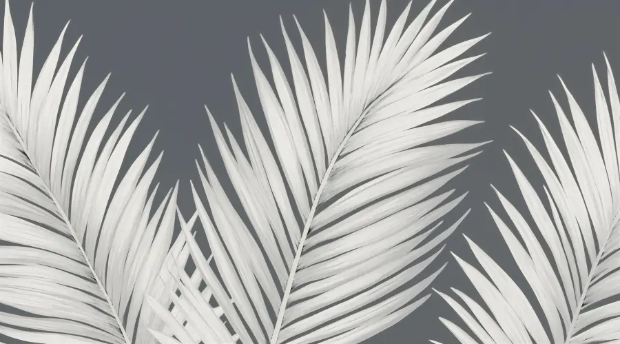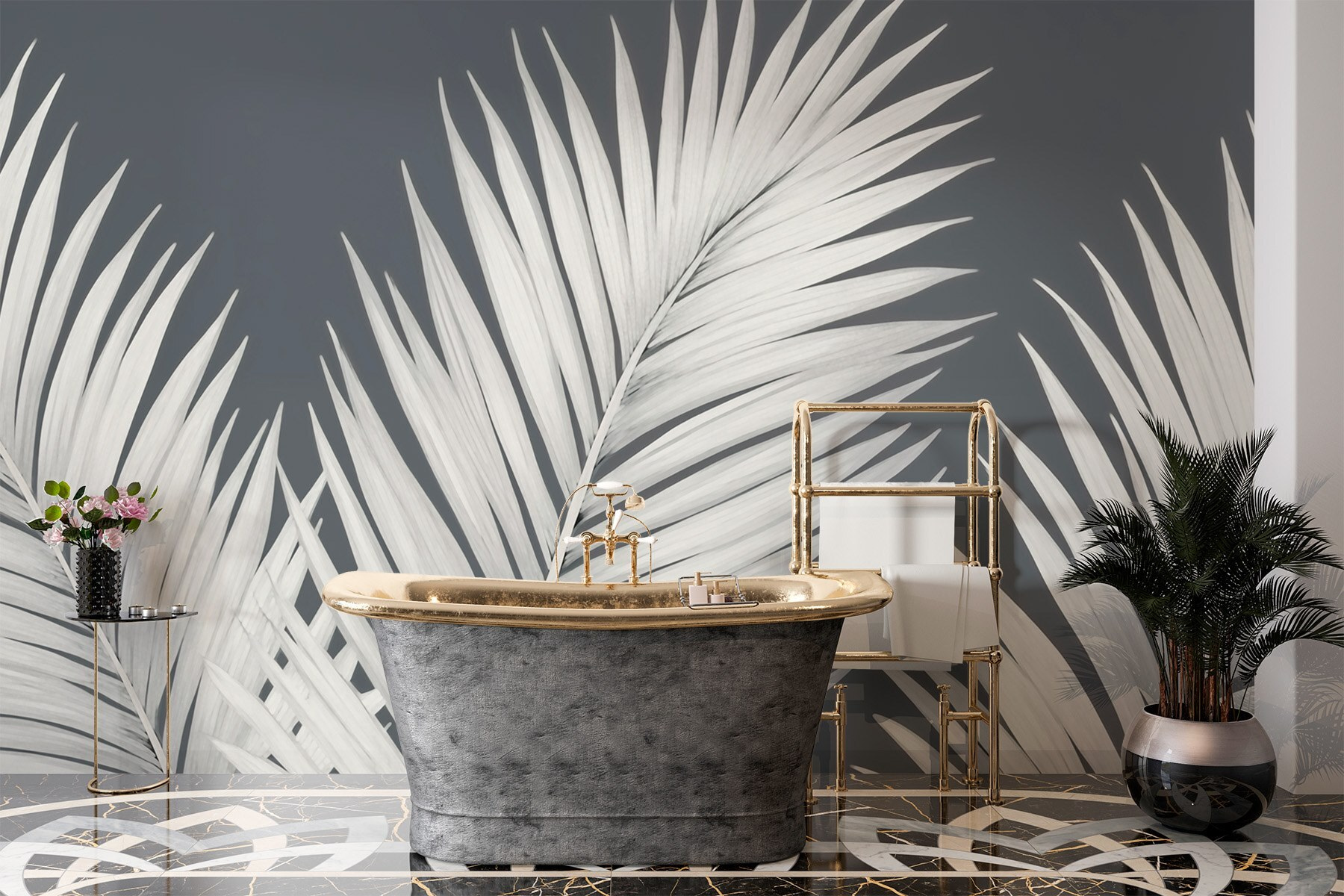 Carta da parati Eleganti foglie di palma su uno sfondo grigio (SKU: w02569)