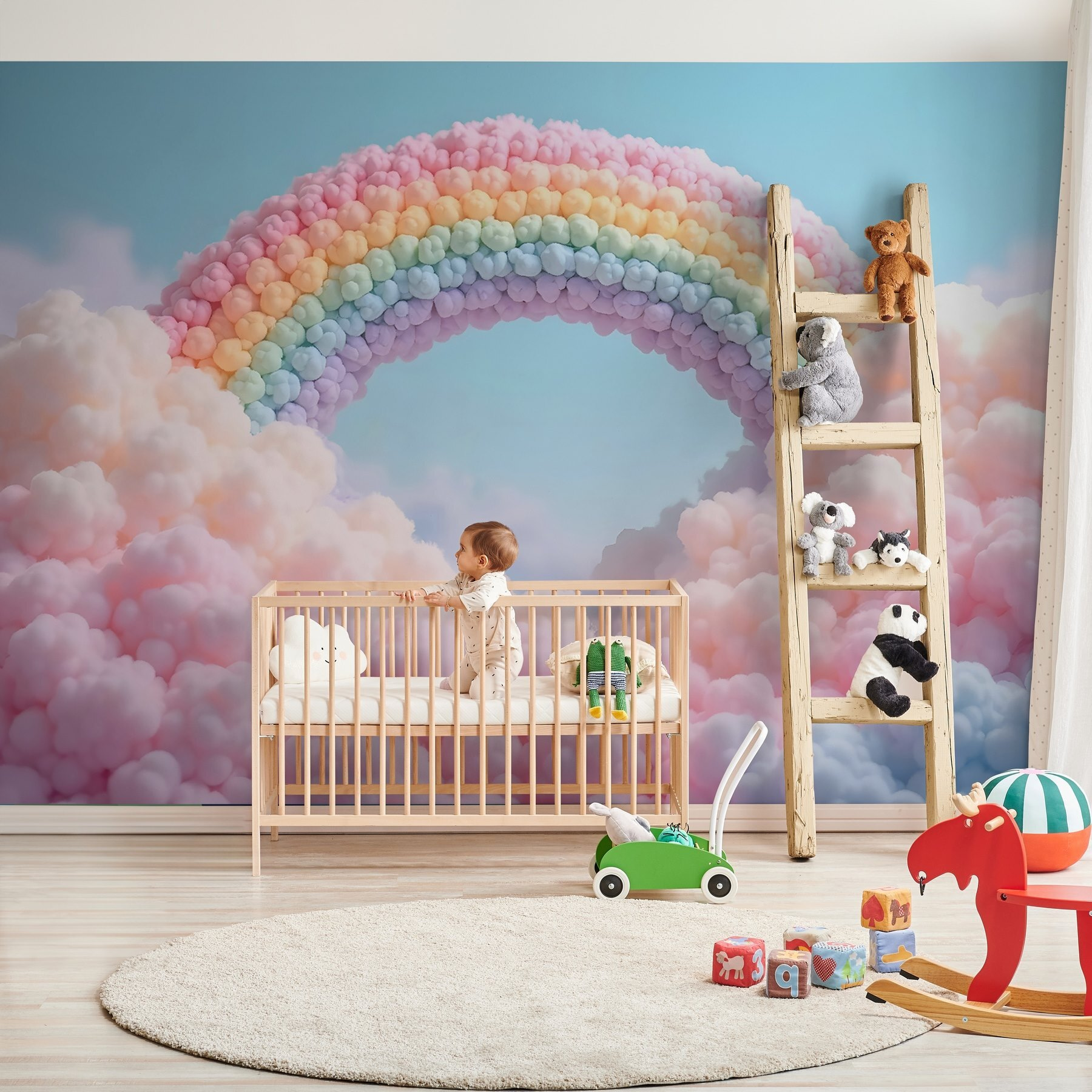 Trasformate qualsiasi spazio con questo delizioso “Carta da parati Rainbow Made of Clouds”. Immaginate di entrare in una stanza dove soffici nuvole e arcobaleni pastello creano un’atmosfera da sogno: è come un dolce abbraccio per le vostre pareti! Perfetto per ravvivare la stanza dei bambini, la sala giochi o anche un accogliente angolo lettura. Le tonalità tenui invitano alla calma e rendono difficile non sorridere. Immaginate una giornata di pioggia trasformata in sole, dove basta uno sguardo per risollevare il morale. È stravagante e rassicurante, proprio quello di cui ogni casa ha bisogno. Migliorate il vostro arredamento con una spruzzata di allegria fantasiosa!