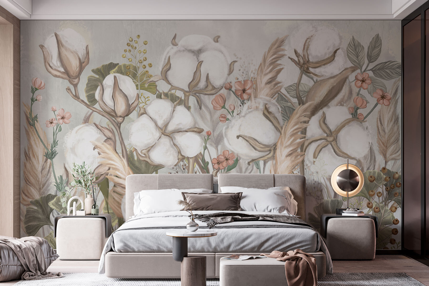 Trasformate le vostre pareti con il murale da sogno “Fluffy Cotton Blooms in Soft Hues”. Immaginate di entrare in un giardino sereno dove la morbidezza dei fiori di cotone sussurra dolci parole. Questo disegno è un dolce richiamo alla bellezza della natura, perfetto per creare un’atmosfera accogliente. I verdi tenui e i neutri caldi fanno sembrare la primavera tutto l’anno: chi non la vorrebbe? Immaginatelo in una cameretta, o magari in un rilassante angolo lettura. Non sentite il profumo dell’aria fresca? Questo murale non si limita a decorare, ma invita a fermarsi, a respirare e a godere della bellezza che ci circonda. Fidatevi di noi, anche il vostro muro vi ringrazierà!