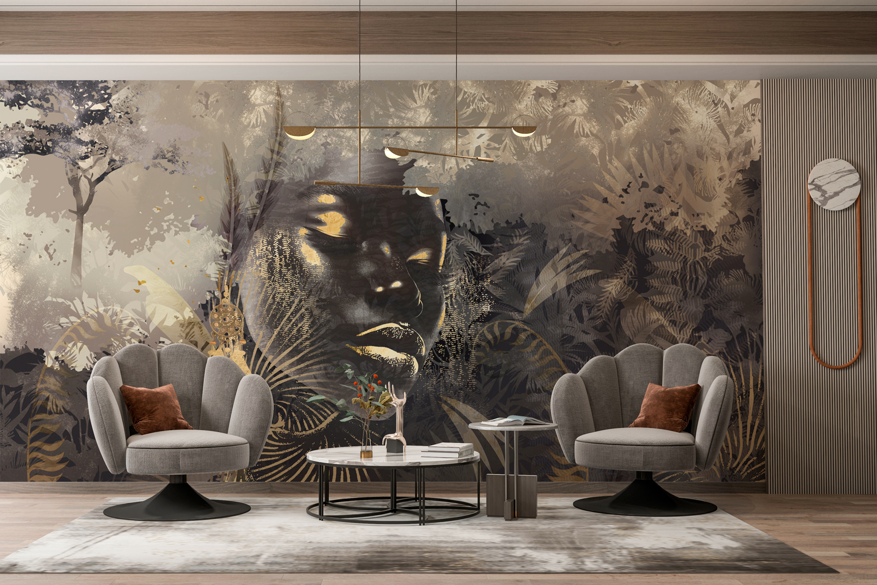 Entrate in un mondo in cui arte e natura si incontrano! Questo murale, “Mysterious Beauty in Nature’s Embrace”, porta la giungla nel vostro spazio vitale. Immaginate di sorseggiare il vostro caffè mattutino circondati da vibrazioni tropicali e da un sussurro di foglie… che atmosfera! I colori tenui e terrosi e i disegni intricati vi attirano, rendendo ogni sguardo una piccola fuga. Gli amici potrebbero persino perdersi nei dettagli, ridacchiando sul fatto di essersi “persi nei boschi” senza mai uscire di casa. Trasformate le vostre pareti in una fuga tranquilla: chi avrebbe mai detto che la natura potesse essere così accogliente?