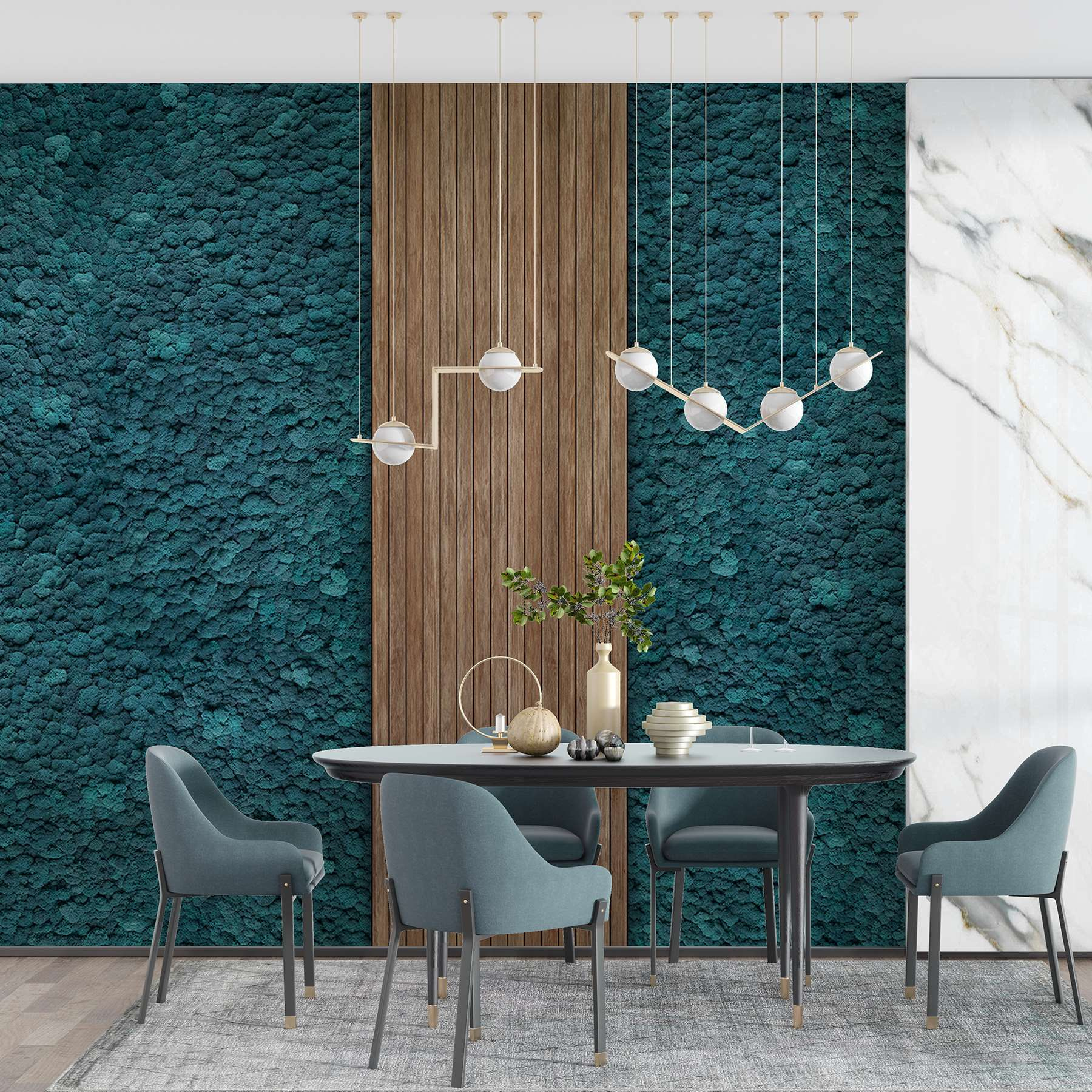 Guardate esattamente come apparirà il vostro spazio con la nuova carta da parati prima di acquistarla. Visualizzazione professionale da parte di designer esperti senza alcun costo o obbligo di acquisto.