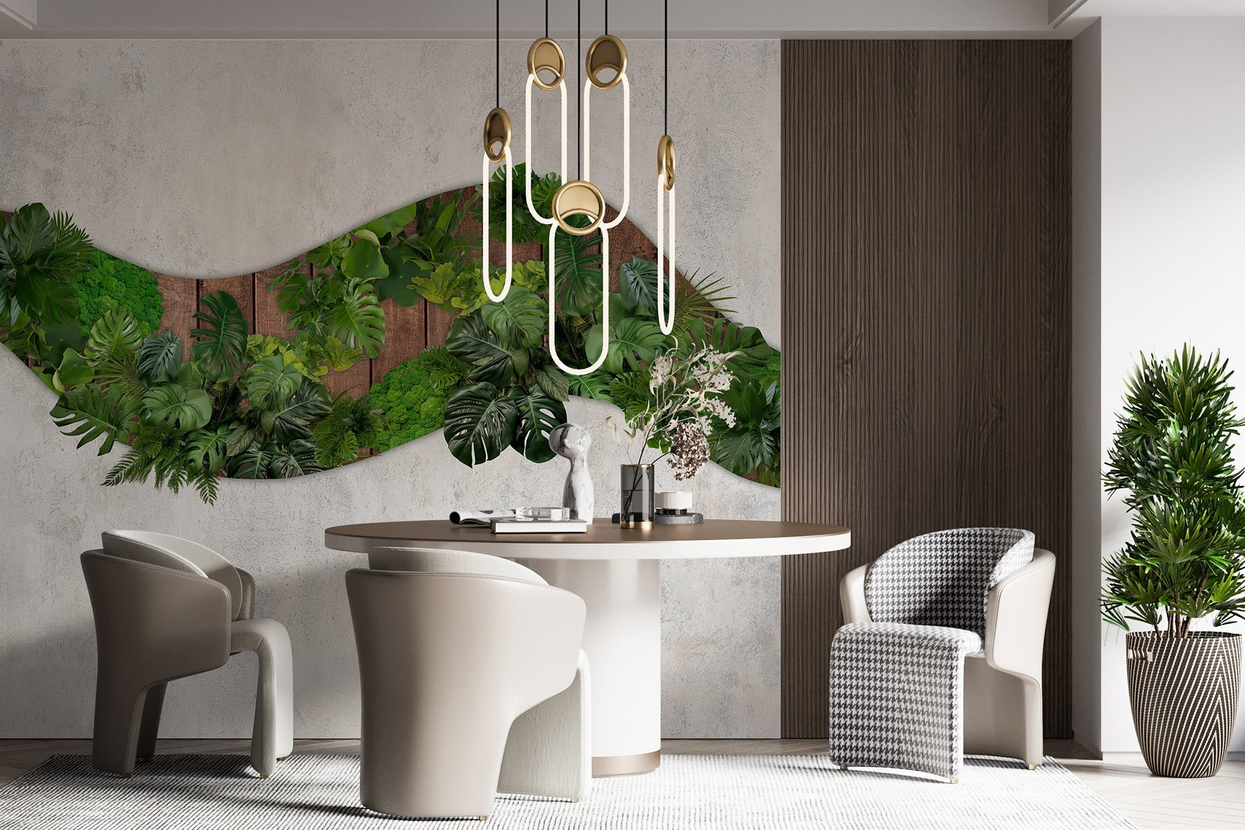 Guardate esattamente come apparirà il vostro spazio con la nuova carta da parati prima di acquistarla. Visualizzazione professionale da parte di designer esperti senza alcun costo o obbligo di acquisto.