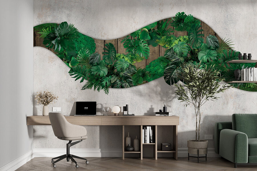 Trasformate qualsiasi ambiente con questo splendido murale con foglie verdi a cascata su una superficie in legno. Immaginate di immergervi in una giungla vibrante direttamente dal vostro spazio abitativo: ogni dettaglio di foglie conferisce un’atmosfera fresca e tropicale a cui è difficile resistere. È come se la natura si fosse autoinvitata all’interno, rendendo le pareti più vive. Immaginatevi di essere sdraiati su un divano accogliente, con la luce del sole che entra e questo splendido murale come sfondo. Un vero e proprio toccasana per l’umore! Che si tratti di un ufficio in casa o di una zona relax, è una scelta perfetta per chiunque voglia aggiungere un po’ di divertimento e di fascino. Inoltre, chi non vorrebbe un tocco di aria aperta, senza gli insetti?