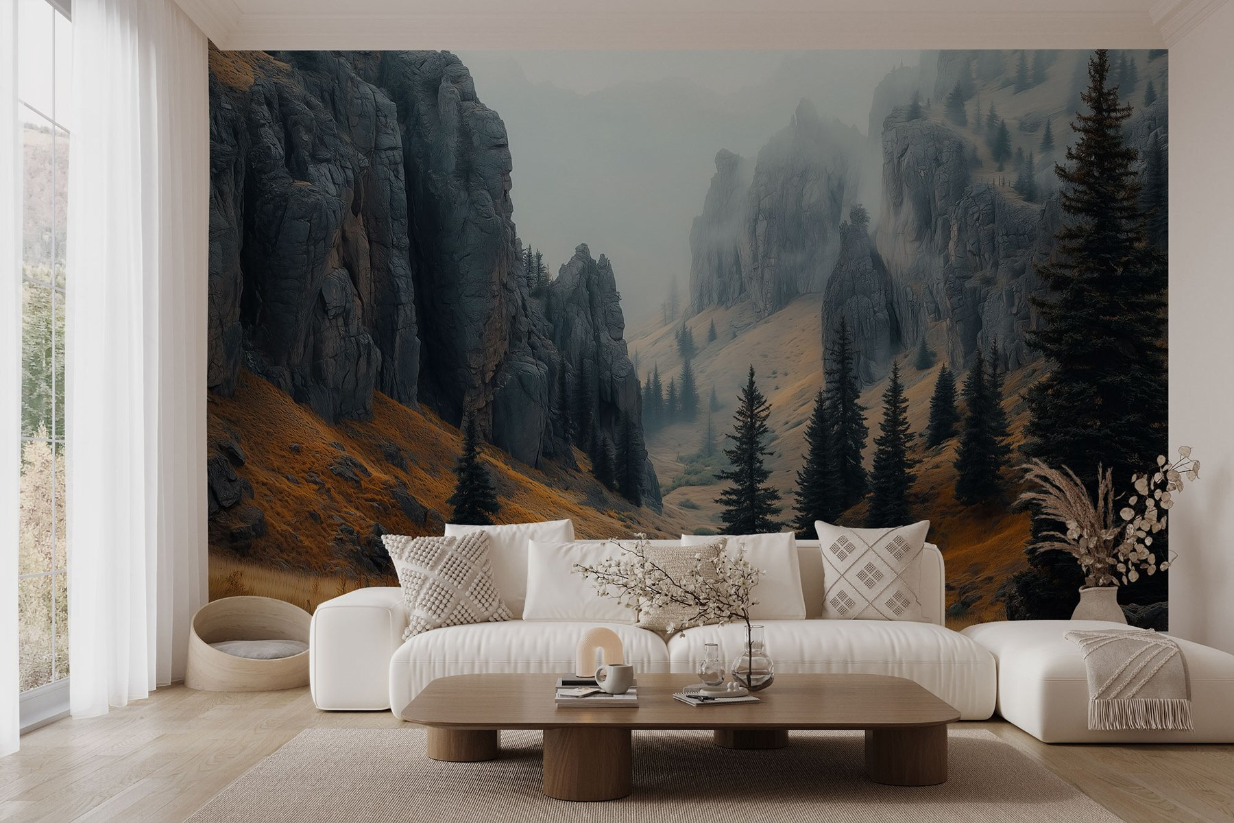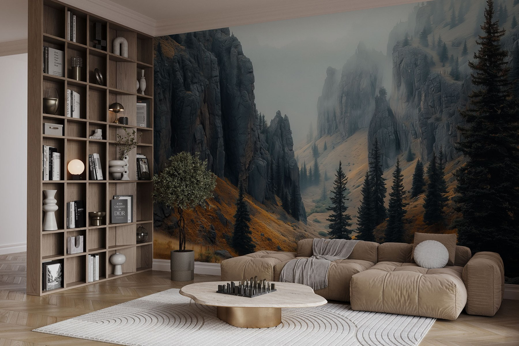 Trasformate qualsiasi stanza in un accogliente rifugio di montagna con questo splendido murale con montagne rocciose avvolte da una leggera nebbia. Immaginate di svegliarvi con questo paesaggio sereno al posto di una parete vuota: un vero toccasana per l’umore! Il verde intenso degli alberi risalta sui toni della terra, invitando un tocco di natura nel vostro spazio. È perfetto per chi sogna di fuggire nella natura ma apprezza comunque una calda tazza di caffè a casa. Immaginatevelo: Le domeniche mattina passate a sorseggiare quel caffè mentre i bambini costruiscono le fortificazioni: questo sì che è un ricordo! E poi, la nebbiosa atmosfera di montagna? Un’atmosfera davvero suggestiva. Che si tratti di un soggiorno, di un ufficio o di un angolo per la meditazione, questo murale è un mix perfetto di avventura e calma. È come una boccata d’aria fresca di montagna senza scarponi da trekking. Quindi, perché non fare un piccolo viaggio senza lasciare il divano?