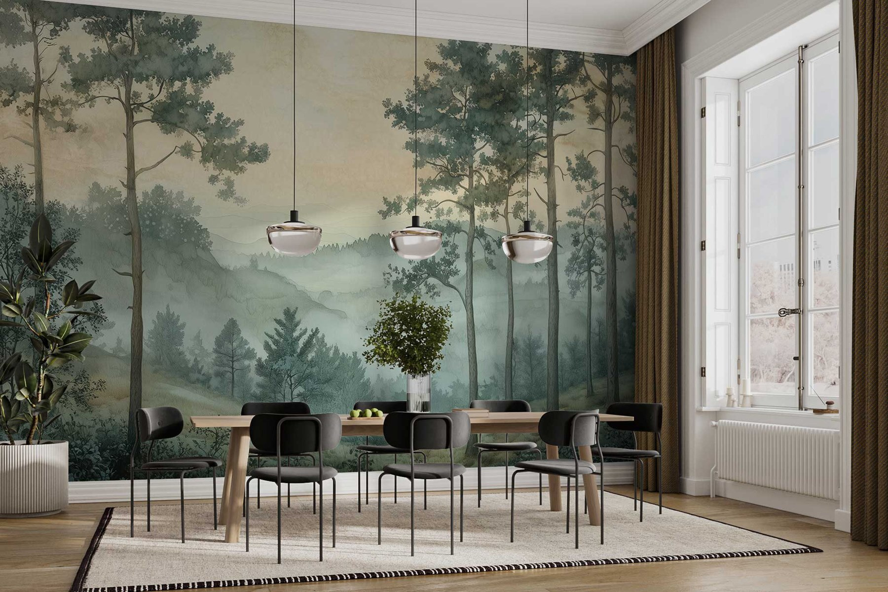 Immaginate di entrare in una foresta serena, avvolta da una leggera nebbia: questo murale fa proprio questo! Con i suoi alberi rigogliosi e il suo paesaggio da sogno, porta una fetta di natura direttamente in casa vostra. Perfetto per quegli angoli accoglienti o per uno spazio più aperto che desidera un’atmosfera un po’ più rilassata. Chi ha bisogno di una vacanza quando la vostra parete può sussurrare i segreti dei sentieri del bosco? Ogni sguardo potrebbe evocare una tranquilla escursione, con tanto di fruscio delle foglie. Trasformate la vostra stanza in un rifugio tranquillo e sentitevi come se aveste i grandi spazi aperti a portata di mano, senza bisogno di spray per insetti!