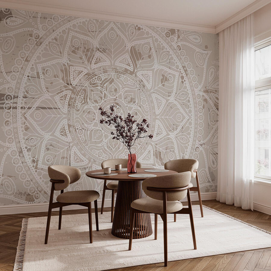 Trasformate qualsiasi spazio con questo splendido murale, “Mandala bianco su superficie marrone”. È come portare a casa vostra un’opera d’arte direttamente da un accogliente caffè. Gli intricati disegni bianchi su uno sfondo caldo e terroso creano un contrasto sorprendente: immaginate di sorseggiare un tè mentre vi immergete in queste vibrazioni. Davvero, invita alla calma come un dolce abbraccio.
