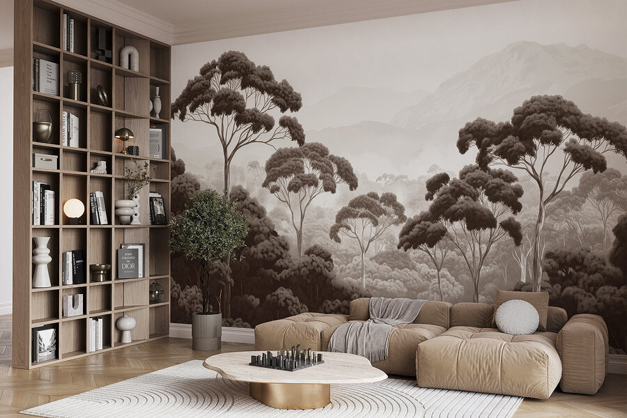 Trasformate qualsiasi stanza in una fuga serena con questo splendido murale che raffigura una tranquilla scena di foresta: alberi imponenti e maestose montagne sullo sfondo. Immaginate di svegliarvi ogni giorno con questa vista rilassante, come se la natura stessa si fosse trasferita a casa vostra. I toni morbidi e terrosi evocano un senso di pace, perfetto per rilassarsi o per aggiungere un’atmosfera accogliente durante le maratone di Netflix. È come portare un po’ di aria aperta dentro casa, senza insetti e scarpe infangate. Avete voglia di sognare ad occhi aperti? Basta appoggiarsi e lasciare che gli occhi vaghino in questo paesaggio da sogno. Perfetto per qualsiasi spazio, questo murale fa sentire ogni parete come un luogo di fuga.