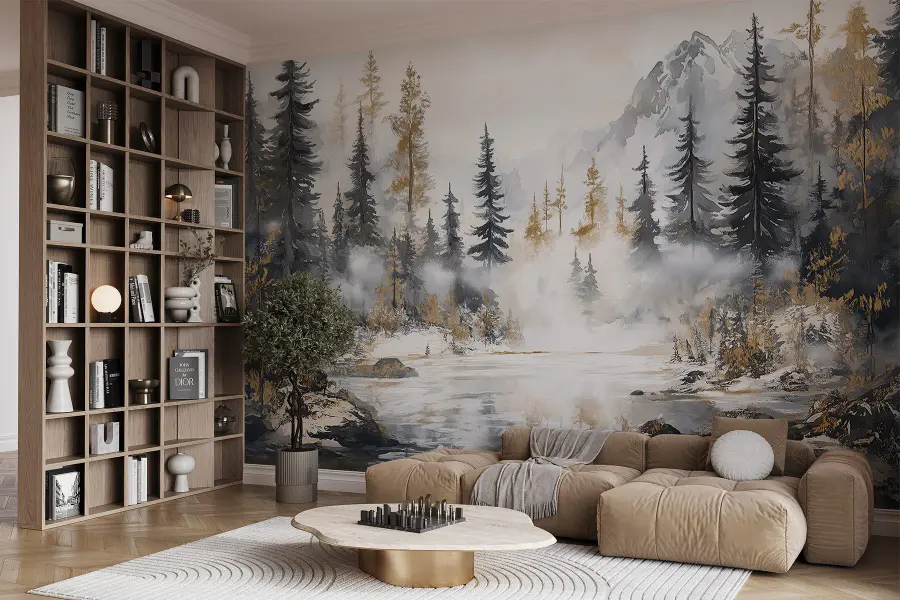 Trasformate il vostro spazio in una fuga serena con questo splendido murale ad acquerello raffigurante una foresta e delle montagne. È come portare la calma della natura in casa, senza le punture d’insetto e le scarpe infangate. Immaginate serate accoglienti trascorse accanto al “fuoco” (o semplicemente con una candela tremolante) guardando gli alberi nebbiosi e le cime imponenti: chi ha bisogno di uno scarpone da trekking quando avete questa bellezza sulla parete? Perfetto per un salotto o per un angolo di lettura, questo murales sussurra relax. È un promemoria artistico per respirare a fondo e lasciare che la natura faccia la sua magia, proprio a casa vostra.