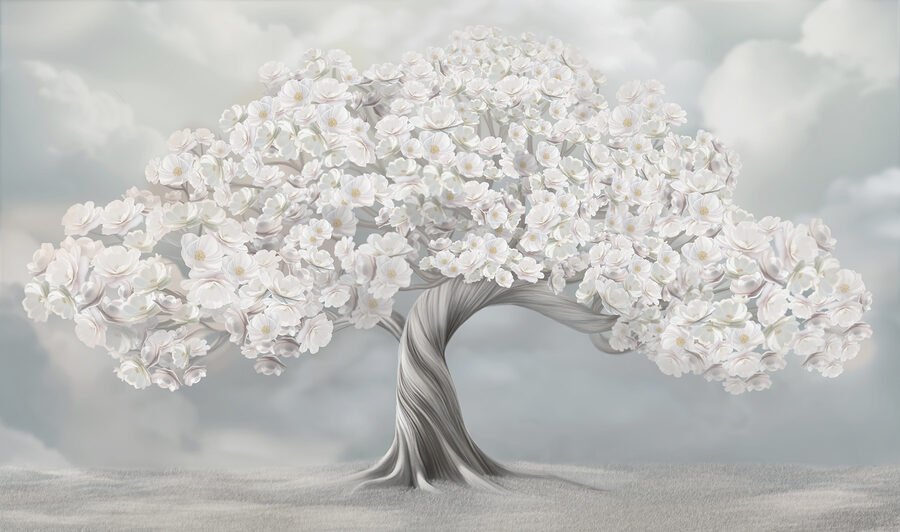 Carta da parati Wall murals Tree with white flowers (SKU: w02748)