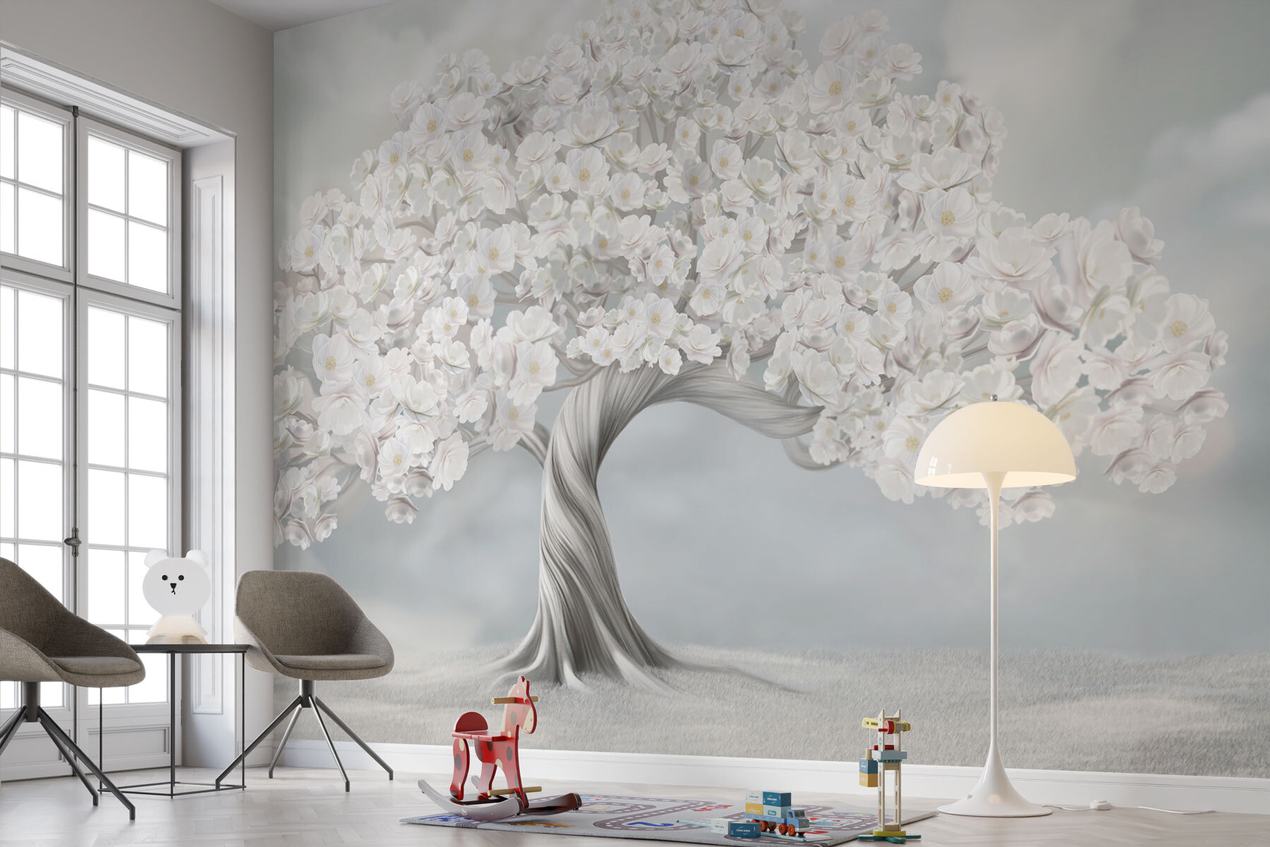 Carta da parati Wall murals Tree with white flowers Carta da parati Wall murals Tree with white flowers