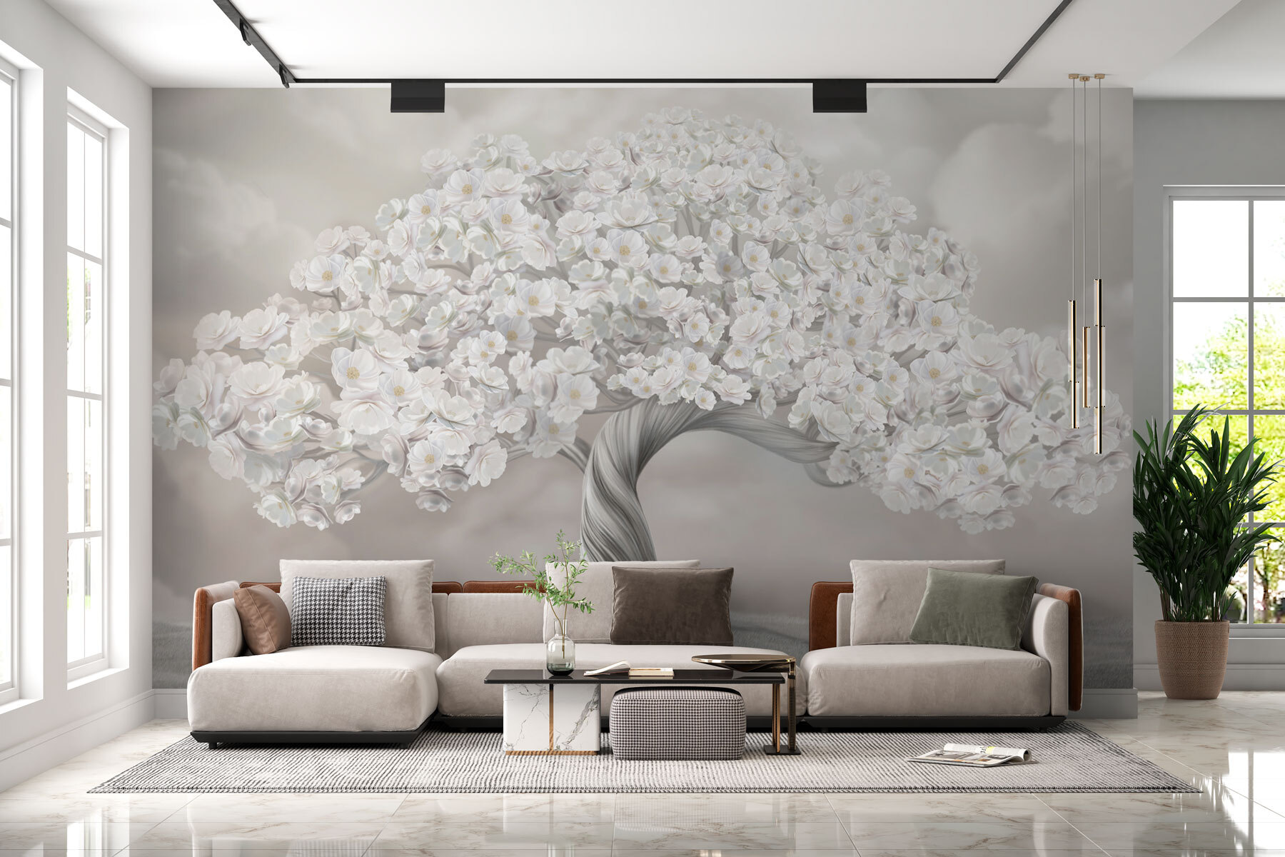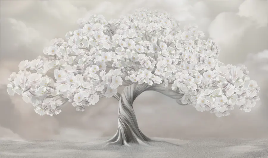 Trasformate qualsiasi stanza in una fuga serena con il “Carta da parati Tree with White Flowers”. Questo incantevole disegno raffigura un albero graziosamente attorcigliato e ricco di delicati fiori bianchi, che evoca le vibrazioni pacifiche di un giardino giapponese. Immaginate di sorseggiare il vostro caffè mattutino, immersi in una luce soffusa, godendo di una piccola fetta di natura proprio sulla vostra parete.