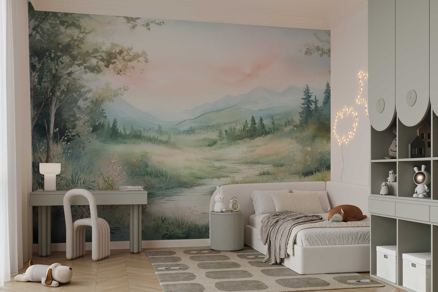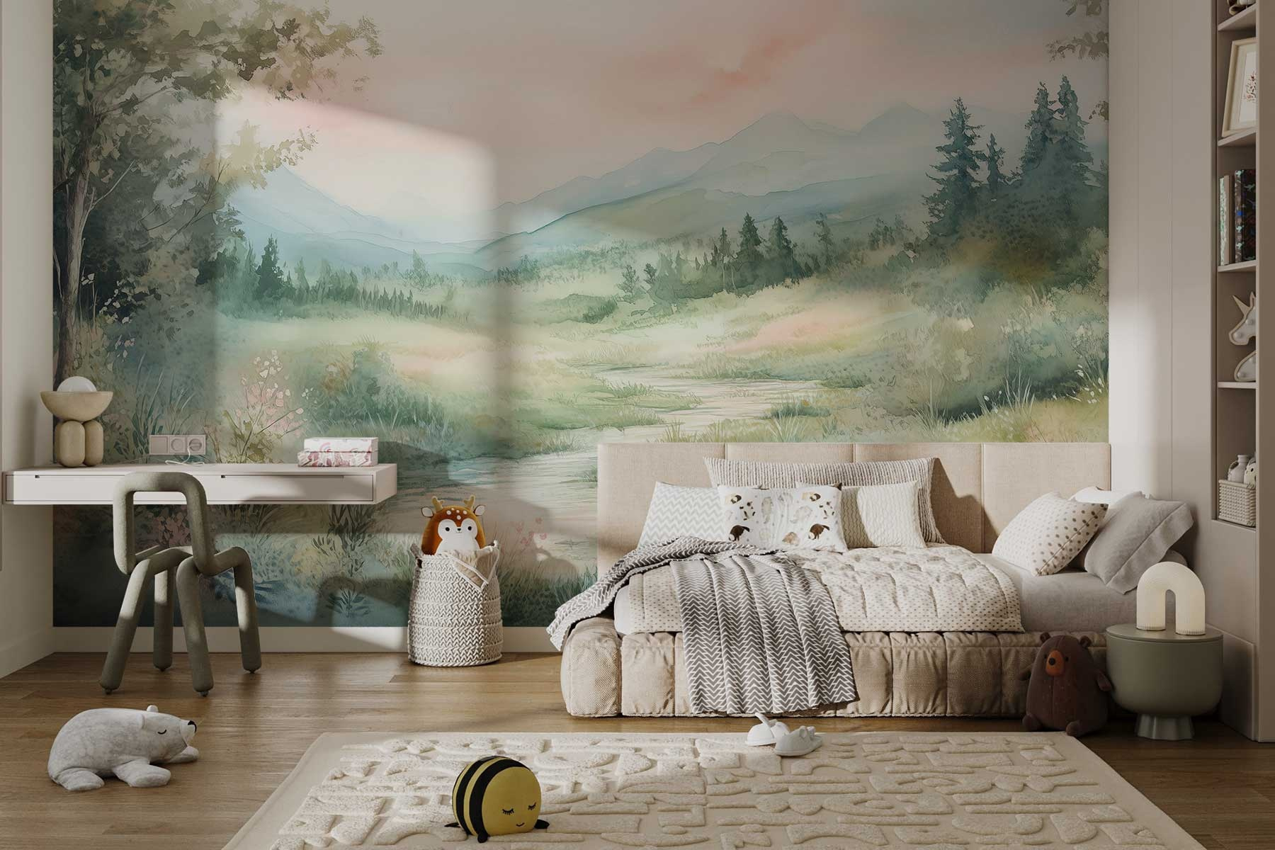Trasformate qualsiasi spazio in una fuga serena con questo splendido murale ad acquerello, che ritrae un fiume che serpeggia in una valle lussureggiante. Immaginate di stare lì, respirando l’aria fresca di una nebbia mattutina, mentre le tinte morbide danzano sulla tela. È come invitare un pezzo di natura all’interno, senza bisogno di scarpe da trekking. Perfetto per soggiorni vivaci o angoli accoglienti, questo murale porta un senso di calma e un tocco di colore. Immaginate di sorseggiare un caffè con il sole che sorge dietro quelle montagne. Chissà, forse vi ispirerà una giornata di avventura o semplicemente una deliziosa giornata di ozio. Davvero, le vostre pareti vi ringrazieranno!