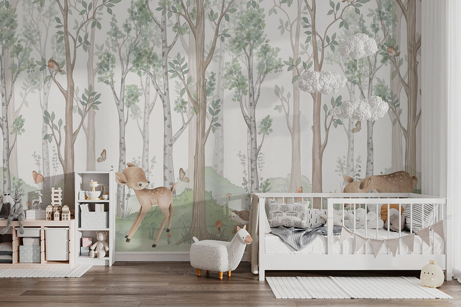 Trasformate qualsiasi stanza in una serena fuga nel bosco con questo incantevole murale. Immaginatevi uno spazio accogliente in cui i cervi si muovono dolcemente, i coniglietti curiosi saltellano e gli uccelli cantano dalle cime degli alberi. È come portare una fetta di natura in casa, senza gli stivali infangati! I colori tenui e le creature stravaganti lo rendono perfetto per le camerette, le stanze dei giochi o anche per un tranquillo angolo di lettura. Immaginate di accoccolarvi con un libro mentre le farfalle svolazzano accanto a voi. Il murale sussurra calma e ci ricorda le passeggiate nella foresta, dove le preoccupazioni svaniscono e regna la tranquillità. Perfetto per gli amanti della natura, è un modo delizioso per aggiungere carattere e fascino alla vostra casa: chi non lo vorrebbe?