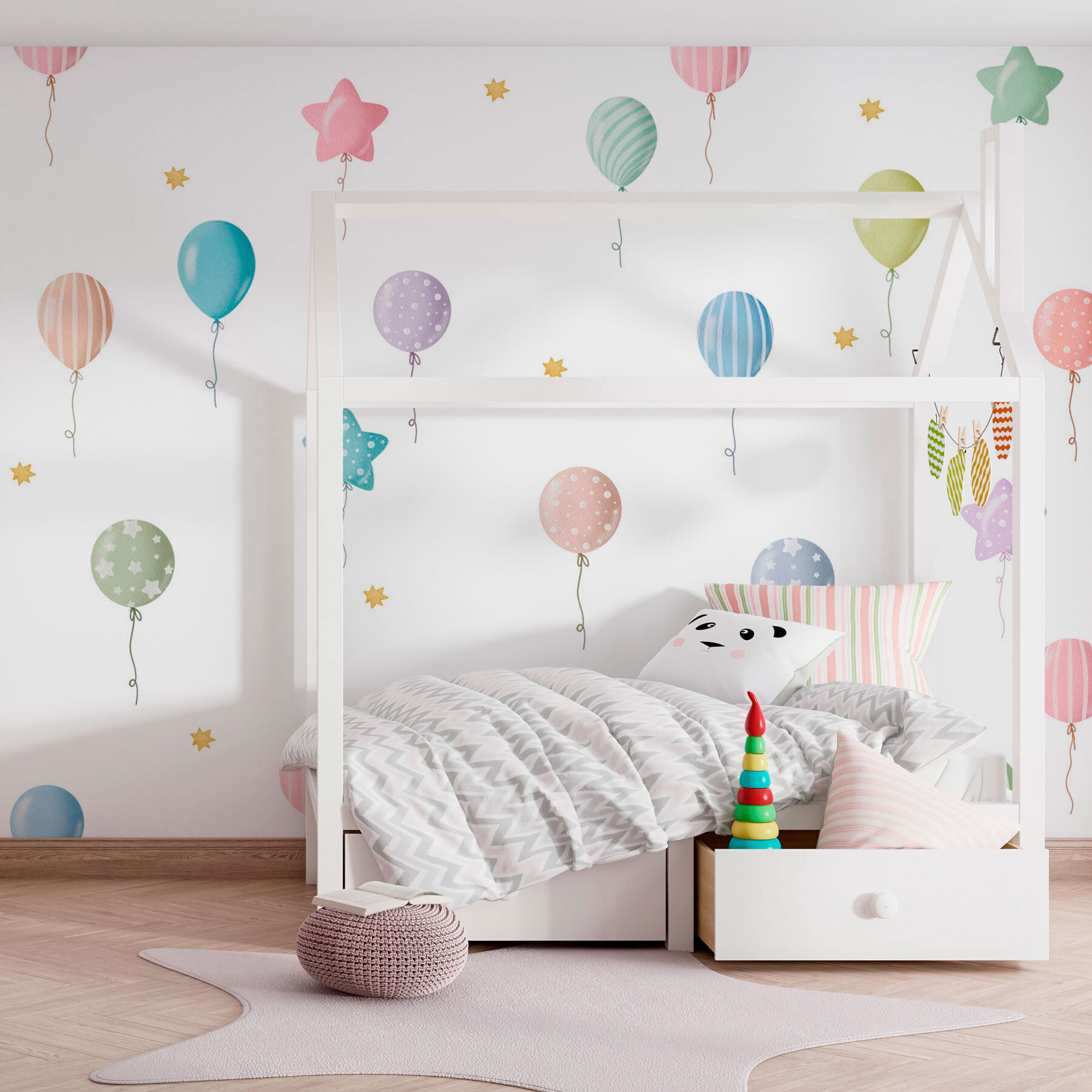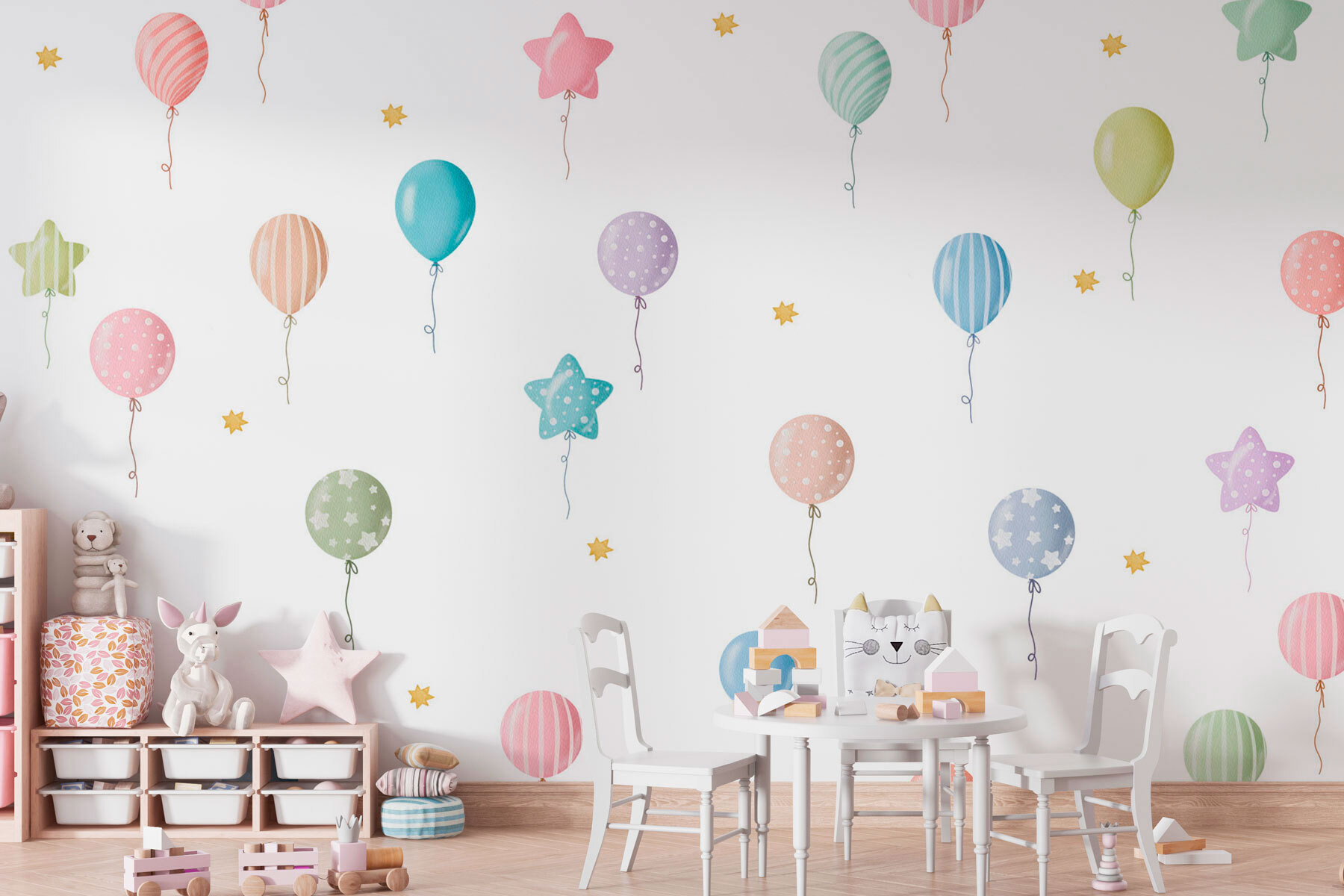 Ravvivate qualsiasi ambiente con questo delizioso murale con incantevoli palloncini e stelle stravaganti! Immaginate di entrare in uno spazio in cui i palloncini pastello fluttuano come se fossero pronti per una festa, mentre le stelle giocose scintillano appena fuori portata. È perfetto per le stanze dei bambini, ma onestamente, chi dice che gli adulti non possano godere della magia dei palloncini? Immaginate i vostri piccoli sognare sotto questo allegro disegno, sentendosi come in una favola. Suscita gioia, risate e un pizzico di nostalgia. Lasciate che questo murale scateni un senso di avventura e di estrosità, perfetto per trasformare una parete insipida in una tela di sogni!
