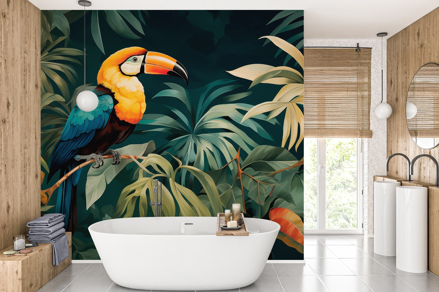 Trasformate il vostro spazio con un tocco di fascino naturale! Questo murale, con un vivace uccello appollaiato su un ramo, invita a portare un tocco di giungla in casa vostra. Immaginate il modo in cui illumina una stanza, riempiendola di sensazioni di avventura e tranquillità. È come avere una piccola fetta di paradiso sulla parete!