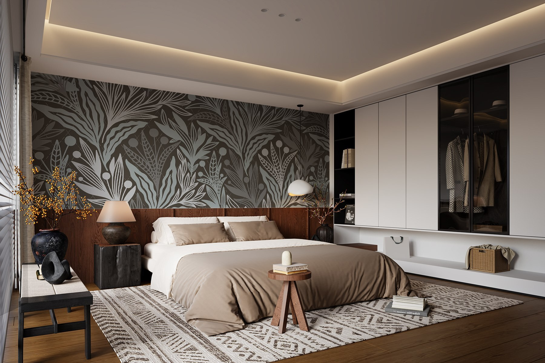 Guardate esattamente come apparirà il vostro spazio con la nuova carta da parati prima di acquistarla. Visualizzazione professionale da parte di designer esperti senza alcun costo o obbligo di acquisto.
