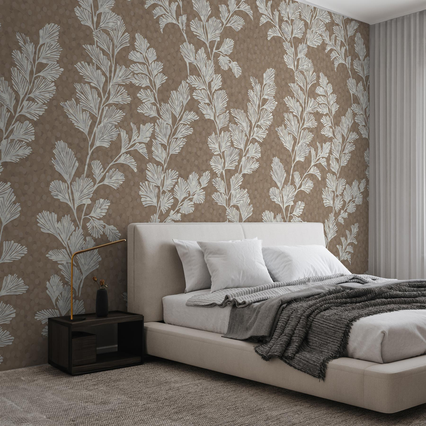Trasformare uno spazio può sembrare una magia, non credete? Ecco allora questo splendido “Murales di foglie bianche”. Immaginate di entrare nella vostra stanza e di trovarvi improvvisamente circondati da un dolce boschetto di foglie bianche, che si dispiegano con grazia su uno sfondo caldo e terroso. È come se la natura avesse deciso di prendere posto proprio nel vostro salotto.
