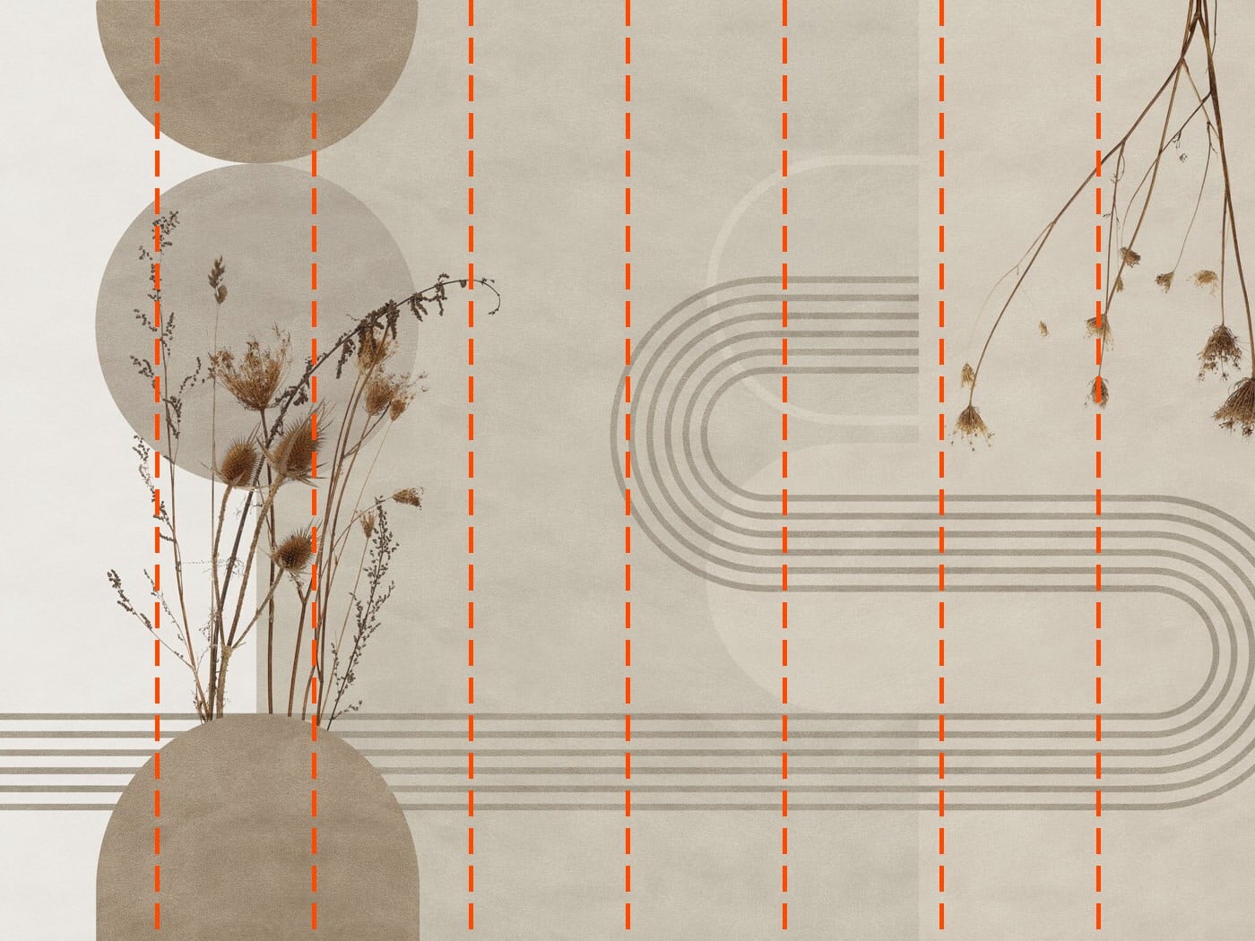 Carta da parati murale Sfondo marrone e bianco con cerchi e piante marroni e bianche
