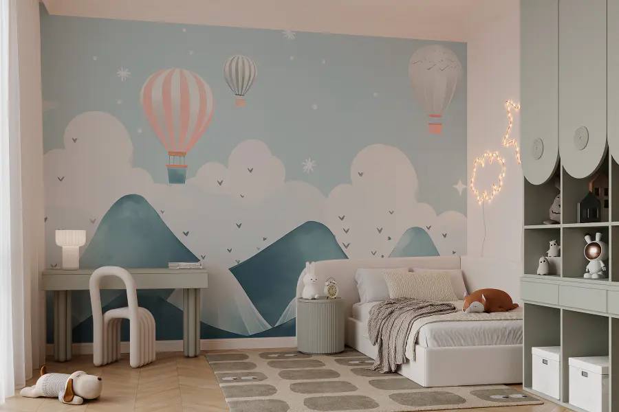 Elevate il vostro spazio con questo incantevole murale con mongolfiere che si muovono con grazia su montagne da sogno. Immaginate di svegliarvi ogni giorno con questa scena serena: è come entrare in un dipinto ad acquerello! Gli azzurri delicati e i tenui colori invitano alla calma, rendendolo perfetto per un accogliente soggiorno o una tranquilla camera da letto. Immaginate le domeniche pigre con una tazza di caffè, la luce del giorno che filtra, mentre sognate di fluttuare tra le nuvole. Aggiungete un tocco di bizzarria alle vostre pareti: potrebbe ispirare un po’ di avventura nella vostra giornata! Chissà, forse anche il muro inizierà a sussurrare dolci piani di fuga.