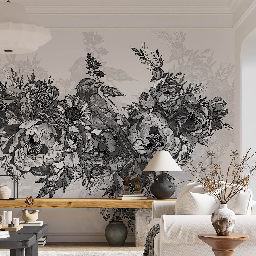 Trasformate qualsiasi parete in un rifugio da sogno con questo murale raffigurante un uccello appollaiato tra fiori vivaci. Porta un tocco di natura all’interno, perfetto per quei giorni in cui l’aria aperta non collabora. Immaginate di accoccolarvi con un libro, con la sensazione che l’uccello stia condividendo i suoi segreti, sussurrando storie di primavera e di sole. Con le peonie e i girasoli che si muovono intorno, è come avere un mini-giardino proprio a casa. Che si tratti di un salotto o di un angolo tranquillo, questo murale aggiunge un tocco di fascino e calore, trasformando gli spazi quotidiani in una fuga personale. Proprio quello che ci vuole per scacciare il grigiore!