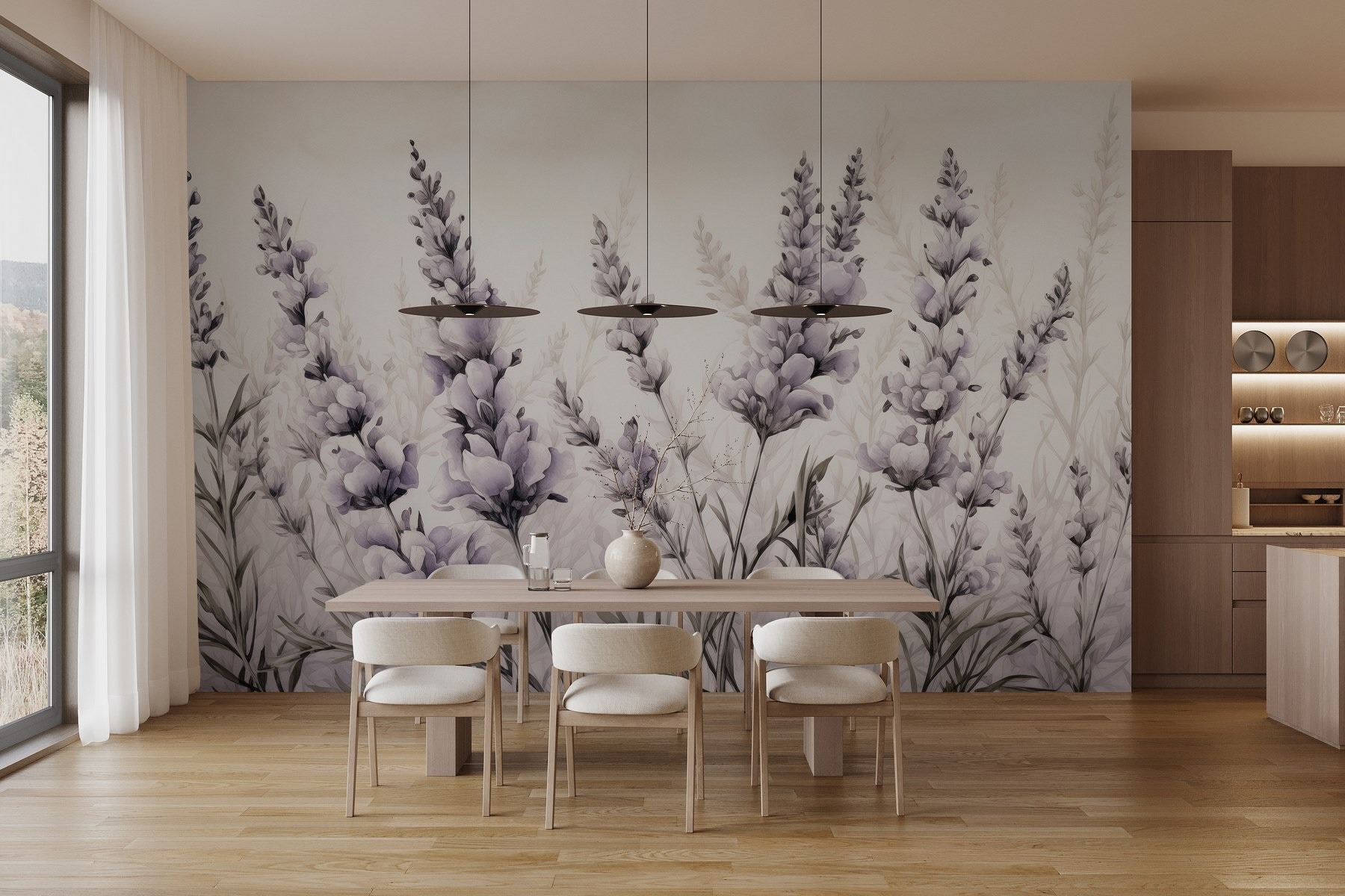 Trasformate qualsiasi stanza con questo splendido murale che presenta fiori e foglie delicati in un sognante stile acquerello. Immaginate di svegliarvi in un morbido campo di lavanda proprio nel vostro spazio: sembra magico, vero? È come portare la tranquillità della natura in casa senza le allergie al polline. Le tonalità delicate e le forme fluide possono trasformare anche la parete più semplice in un piccolo giardino vivace. Perfetto per un angolo accogliente o una zona giorno, questo murale invita al calore e alla gioia. Chi avrebbe mai immaginato che un tocco di fiori potesse rendere la giornata un po’ più luminosa?