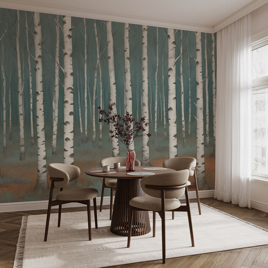Entrate in una foresta serena ogni volta che guardate questo splendido murale. Caratterizzato da un boschetto di eleganti betulle, porta l’atmosfera pacifica della natura direttamente in casa vostra. Immaginate di accoccolarvi con un buon libro, sentendovi come se foste immersi in un accogliente rifugio nel bosco. I colori tenui creano un’atmosfera rilassante, perfetta per trasformare qualsiasi spazio, dal salotto all’angolo della meditazione.