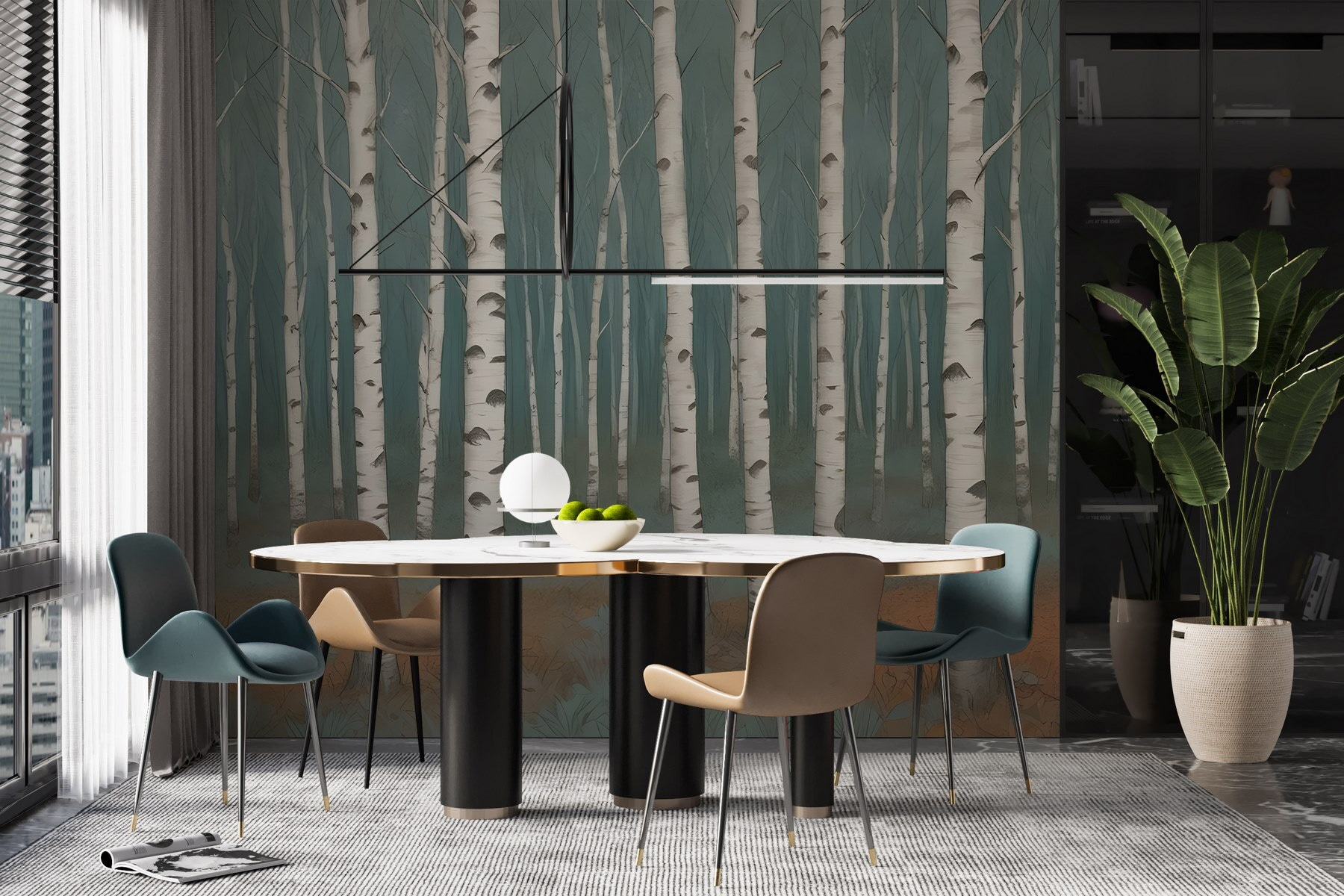 Entrate in una foresta serena ogni volta che guardate questo splendido murale. Caratterizzato da un boschetto di eleganti betulle, porta l’atmosfera pacifica della natura direttamente in casa vostra. Immaginate di accoccolarvi con un buon libro, sentendovi come se foste immersi in un accogliente rifugio nel bosco. I colori tenui creano un’atmosfera rilassante, perfetta per trasformare qualsiasi spazio, dal salotto all’angolo della meditazione.