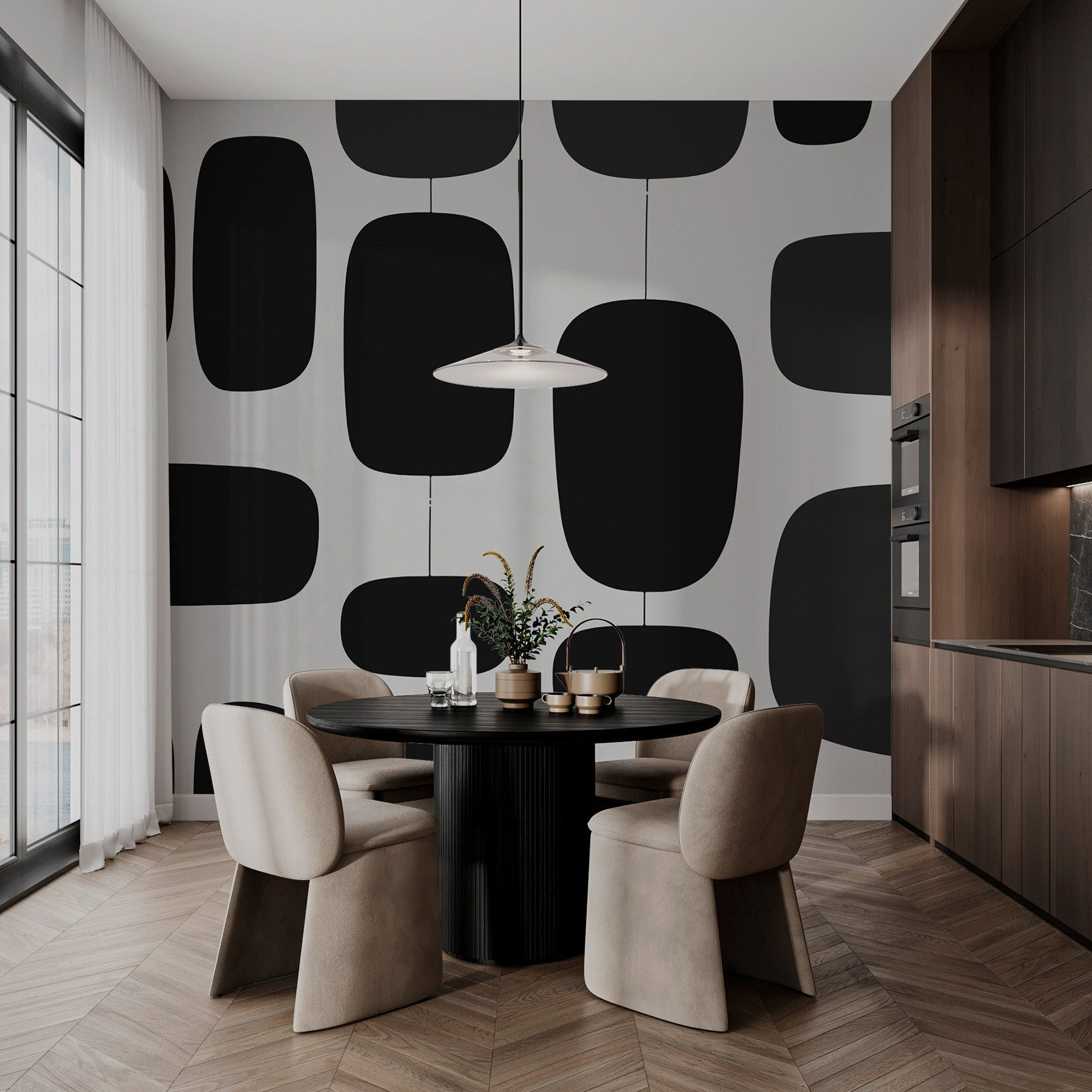 Trasformate il vostro spazio con questo splendido murale in bianco e nero: un vero e proprio pezzo forte! Il motivo giocoso di forme diverse aggiunge un tocco di modernità, perfetto per dare un tocco in più al vostro arredamento. Immaginate di entrare nella vostra stanza e di sentire immediatamente un cambiamento di atmosfera. È come se l’arte desse vita alle vostre pareti.