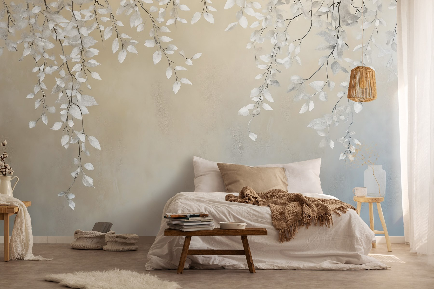 Trasformate qualsiasi spazio con il fascino rilassante di “White Leaves on a Branch”. Questo murale si immerge nell’arte della natura, catturando foglie delicate che sembrano ondeggiare dolcemente in una leggera brezza. È come portare una tranquilla foresta nel vostro salotto, senza i fastidiosi aghi di pino. Immaginate di sorseggiare il vostro caffè mattutino ammirando questo sfondo sereno… un’istantanea iniezione di buonumore! Perfetto per un angolo accogliente o anche per una camera da letto da sogno, intreccia una piccola magia nei momenti quotidiani. È come avere un pezzo di tranquillità a portata di mano. Chi non lo vorrebbe?