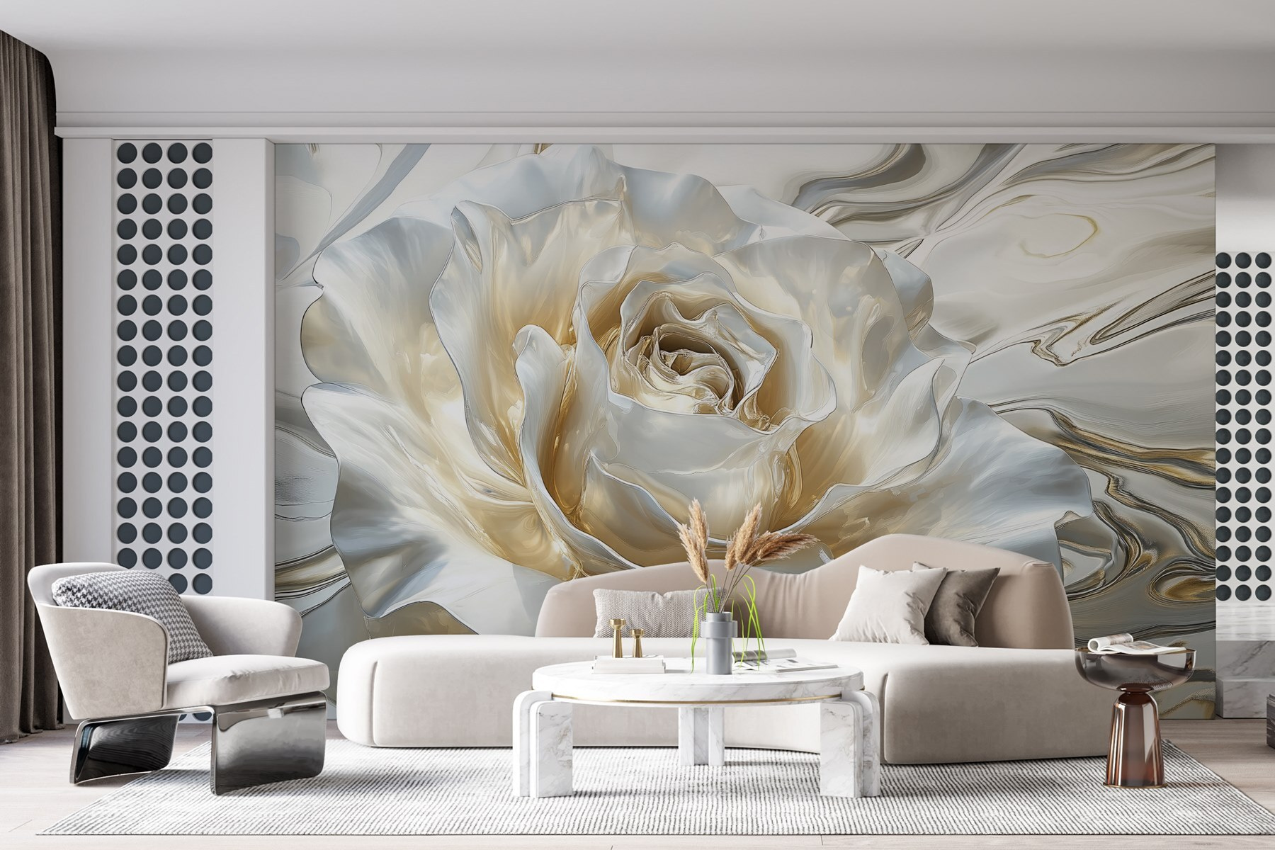 Guardate esattamente come apparirà il vostro spazio con la nuova carta da parati prima di acquistarla. Visualizzazione professionale da parte di designer esperti senza alcun costo o obbligo di acquisto.