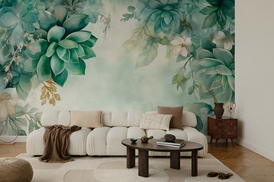 Trasformate qualsiasi stanza in un’oasi serena con questo splendido murale con piante verdi e fiori delicati. Immaginate di svegliarvi ogni mattina con un tocco di natura, con ogni dettaglio di foglie che sussurra relax nel vostro spazio. È come portare un giardino accogliente all’interno dell’abitazione, perfetto per chi ha difficoltà a mantenere in vita una pianta (senza giudicare). L’atmosfera morbida dell’acquerello lo rende leggero e rilassante, evocando tranquille passeggiate in un giardino illuminato dal sole. Ogni sguardo ci ricorda di rallentare e respirare. Perfetto per quella parete che chiede un po’ di vita!