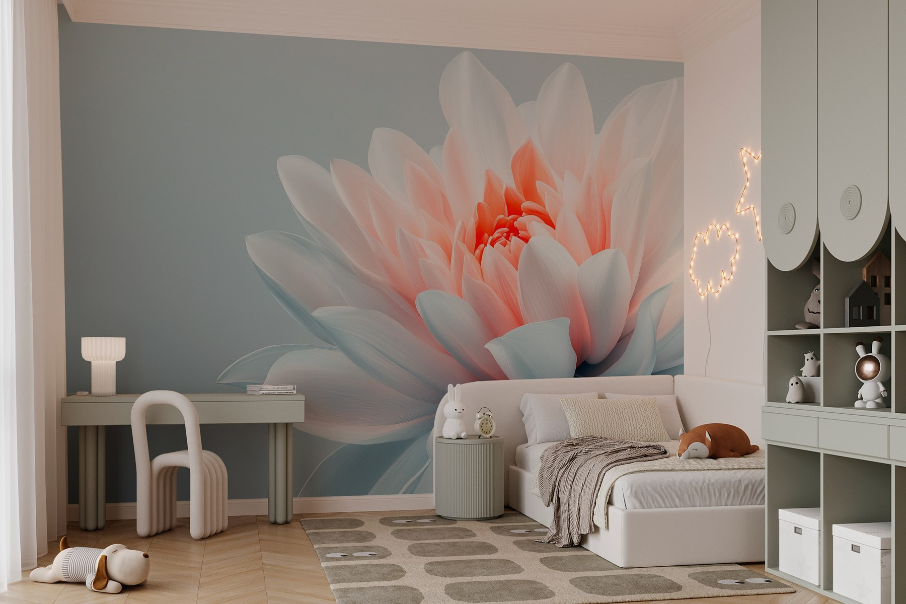 Trasformate qualsiasi stanza in un’oasi serena con “Petali delicati in tinte tenui”. Questo splendido murale cattura la grazia gentile dei fiori, immersi in colori pastello da sogno che sussurrano tranquillità. Immaginate di svegliarvi con questa bellezza, perfetta per godervi il caffè del mattino o per accoccolarvi con un libro. L’effetto acquerello aggiunge un tocco incantevole, quasi come se i fiori svolazzassero fuori dalla parete. È come portare un giardino in casa senza bisogno di avere il pollice verde. Inoltre, chi non ama un piccolo tocco floreale a bassa manutenzione? Perfetto per chi vuole un tocco di natura senza l’esplosione di polline!