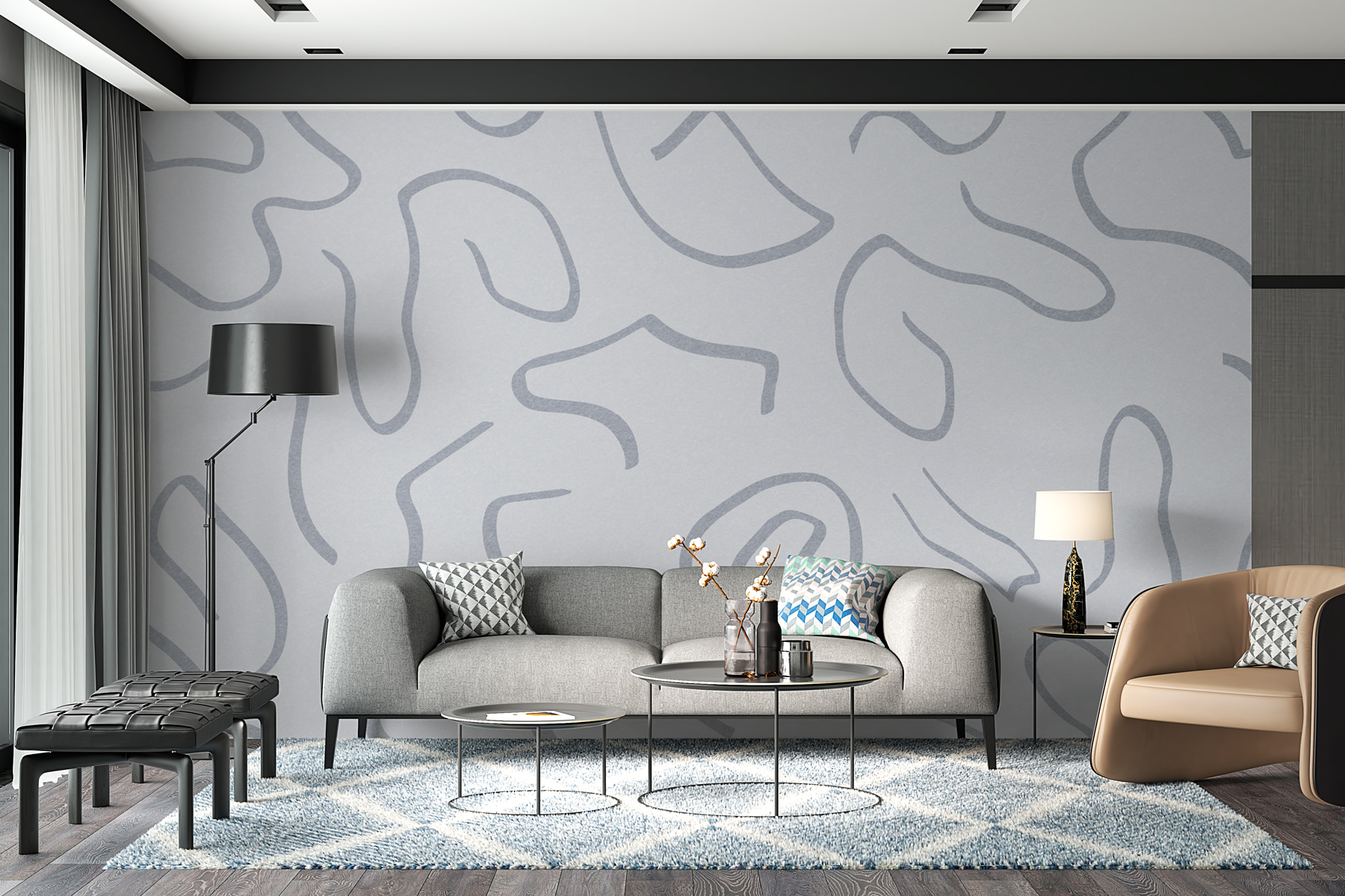 Guardate esattamente come apparirà il vostro spazio con la nuova carta da parati prima di acquistarla. Visualizzazione professionale da parte di designer esperti senza alcun costo o obbligo di acquisto.