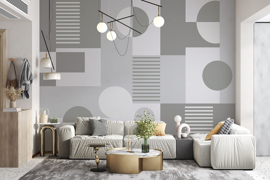 Trasformate il vostro spazio con questo splendido “Murales grigio e bianco a motivi geometrici”. È come un puzzle chic e sofisticato per le vostre pareti! Immaginate di entrare in una stanza dove le linee pulite e le tonalità tenui invitano alla creatività e alla calma: l’ideale per sognare ad occhi aperti o per pianificare il vostro prossimo grande progetto.