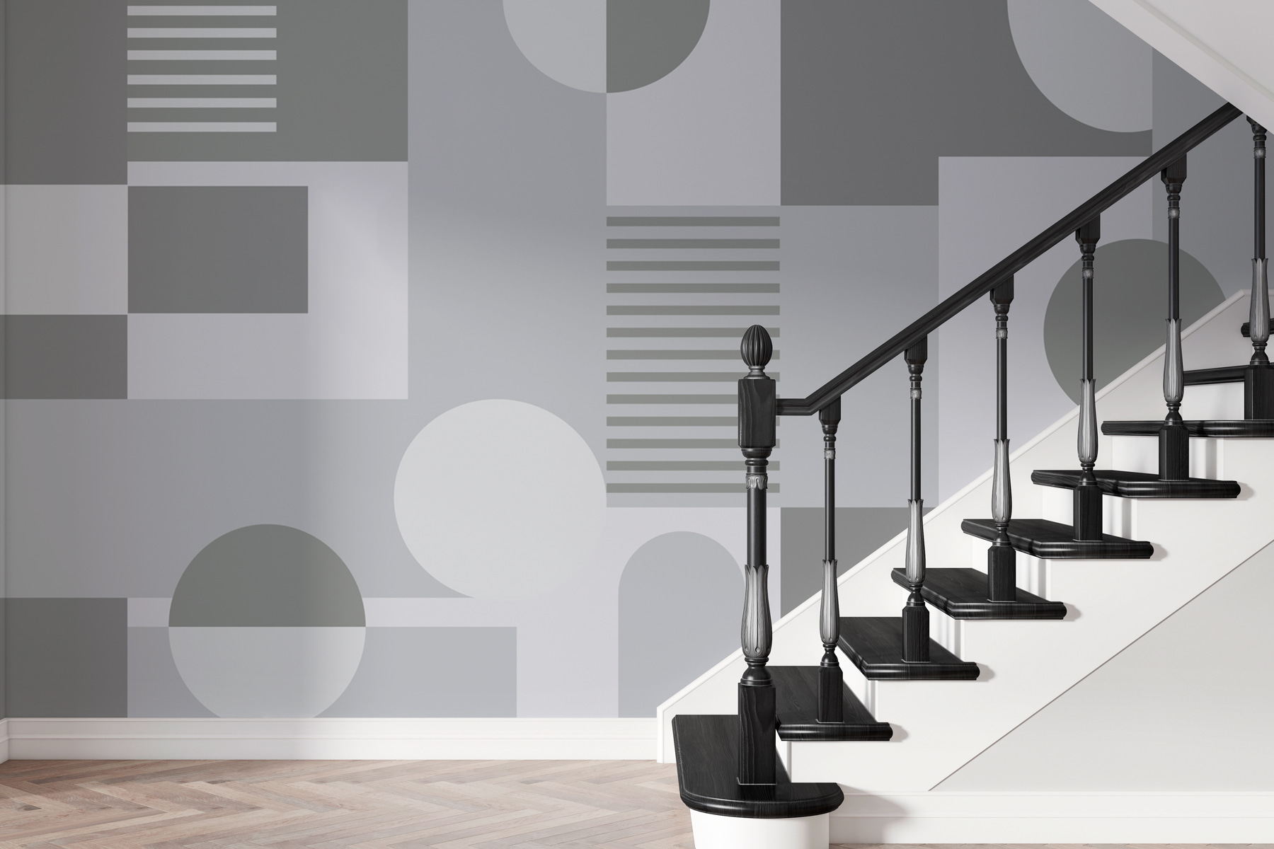 Trasformate il vostro spazio con questo splendido “Murales grigio e bianco a motivi geometrici”. È come un puzzle chic e sofisticato per le vostre pareti! Immaginate di entrare in una stanza dove le linee pulite e le tonalità tenui invitano alla creatività e alla calma: l’ideale per sognare ad occhi aperti o per pianificare il vostro prossimo grande progetto.