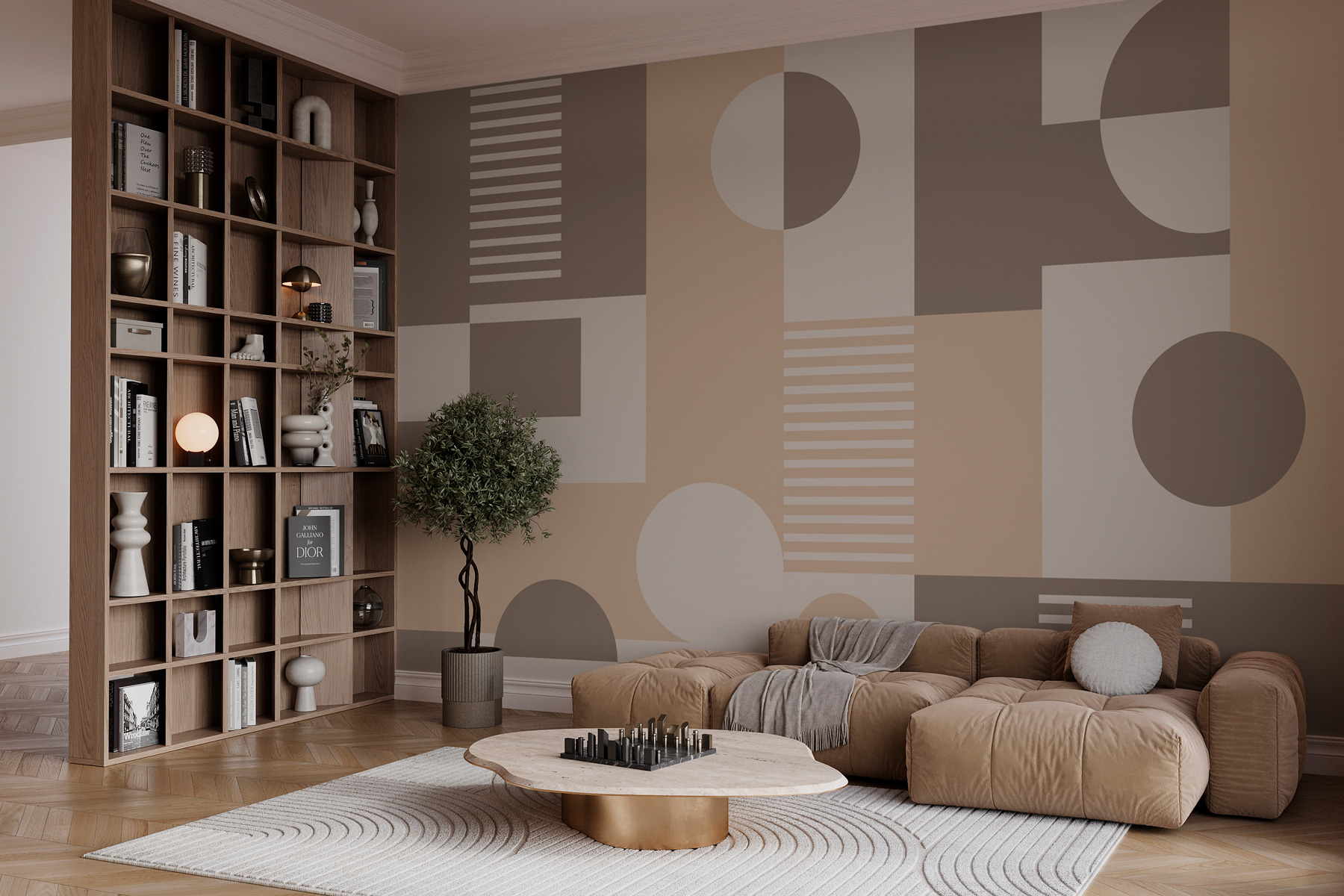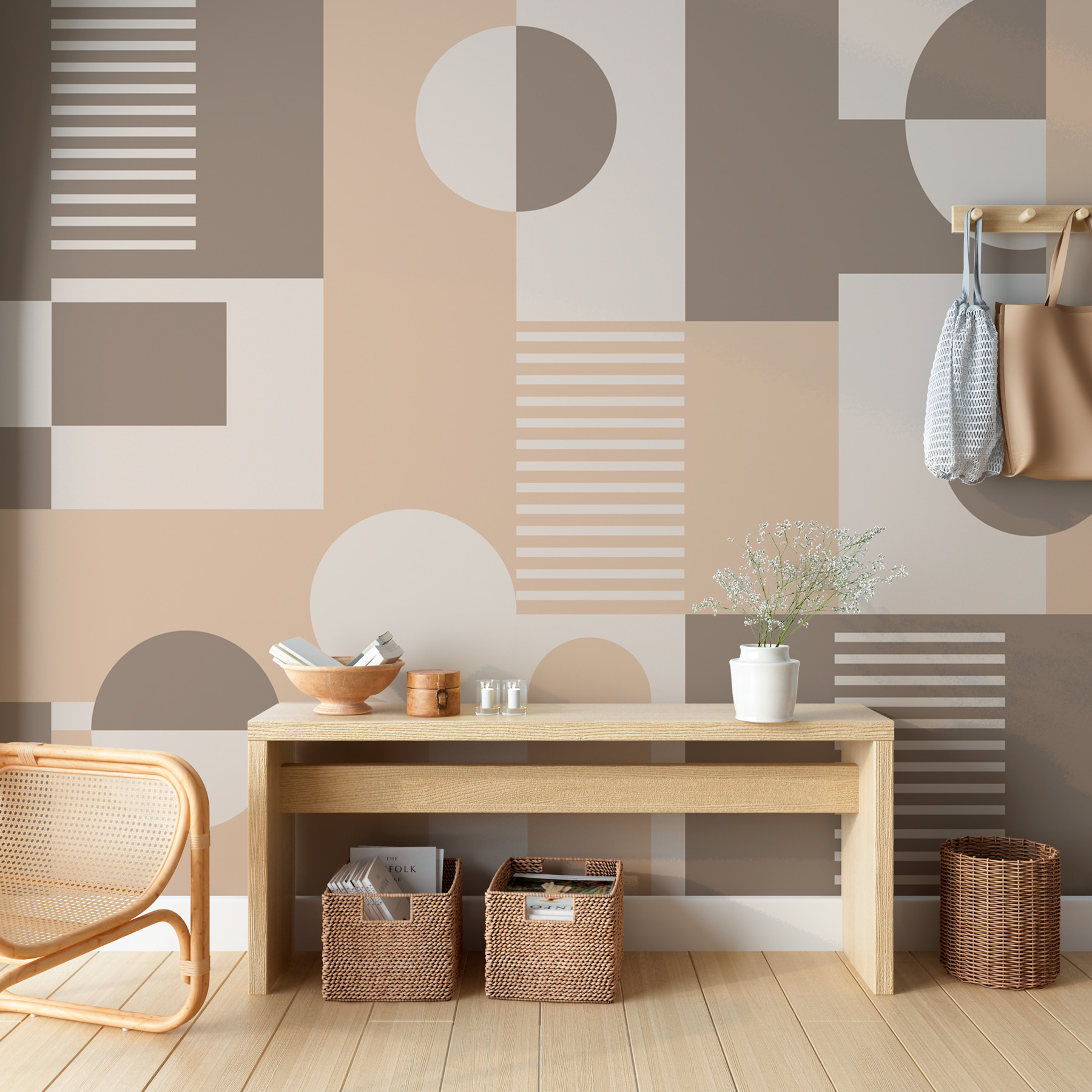 Trasformate qualsiasi ambiente con questo elegante murale caratterizzato da un giocoso mix di forme geometriche. I toni morbidi e terrosi creano un’atmosfera rilassante, perfetta per serate rilassanti o riunioni allegre. Immaginate di sorseggiare un caffè mentre la luce danza su queste linee nitide, facendo sentire lo spazio vivo. Ogni forma sembra raccontare una piccola storia: da dove viene quel cerchio? È una luna? Un accogliente piatto per la colazione? Perfetto per un salotto o un ufficio, stimola la creatività senza sopraffare i sensi. È come avere un’opera d’arte moderna, ma molto più facile da appendere!