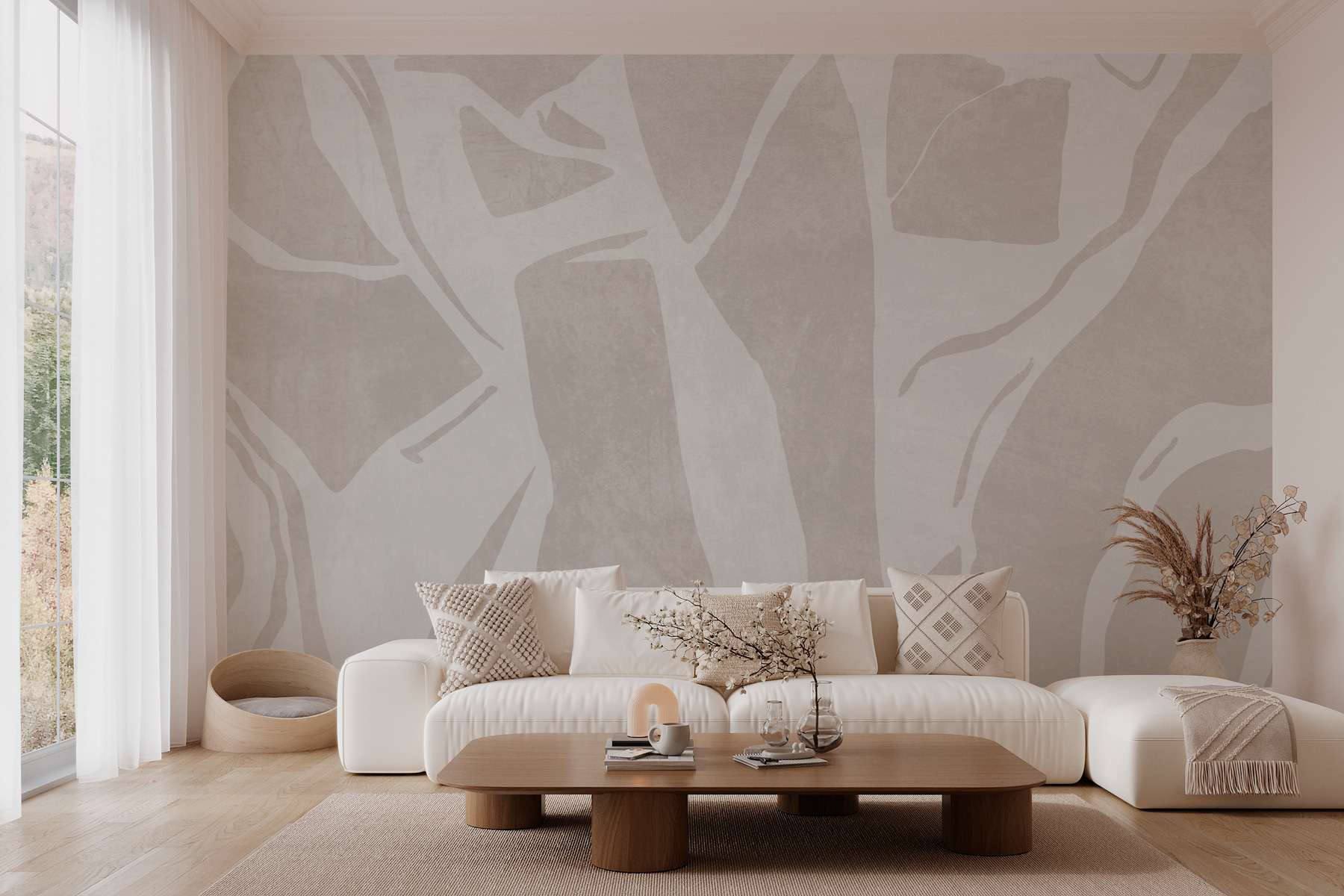 Trasformare uno spazio con questo murale è un po’ come dare alle pareti un abbraccio accogliente. Immaginatelo: uno sfondo leggero e arioso di bianco e grigio, drappeggiato con linee eleganti che fluiscono e danzano. È moderno, ma senza tempo, perfetto per quella stanza in cui creatività e comfort si incontrano. Immaginate di sorseggiare un caffè in un raggio di sole, mentre le morbide trame del vostro spazio danno vita a domeniche pigre. Questo murale non è solo un elemento d’arredo, ma anche un elemento che crea l’atmosfera. Inoltre, evita le noiose pareti beige: le vostre pareti meritano un po’ di personalità! È come un’opera d’arte, ma per la vita di tutti i giorni: un po’ di dramma senza clamore.