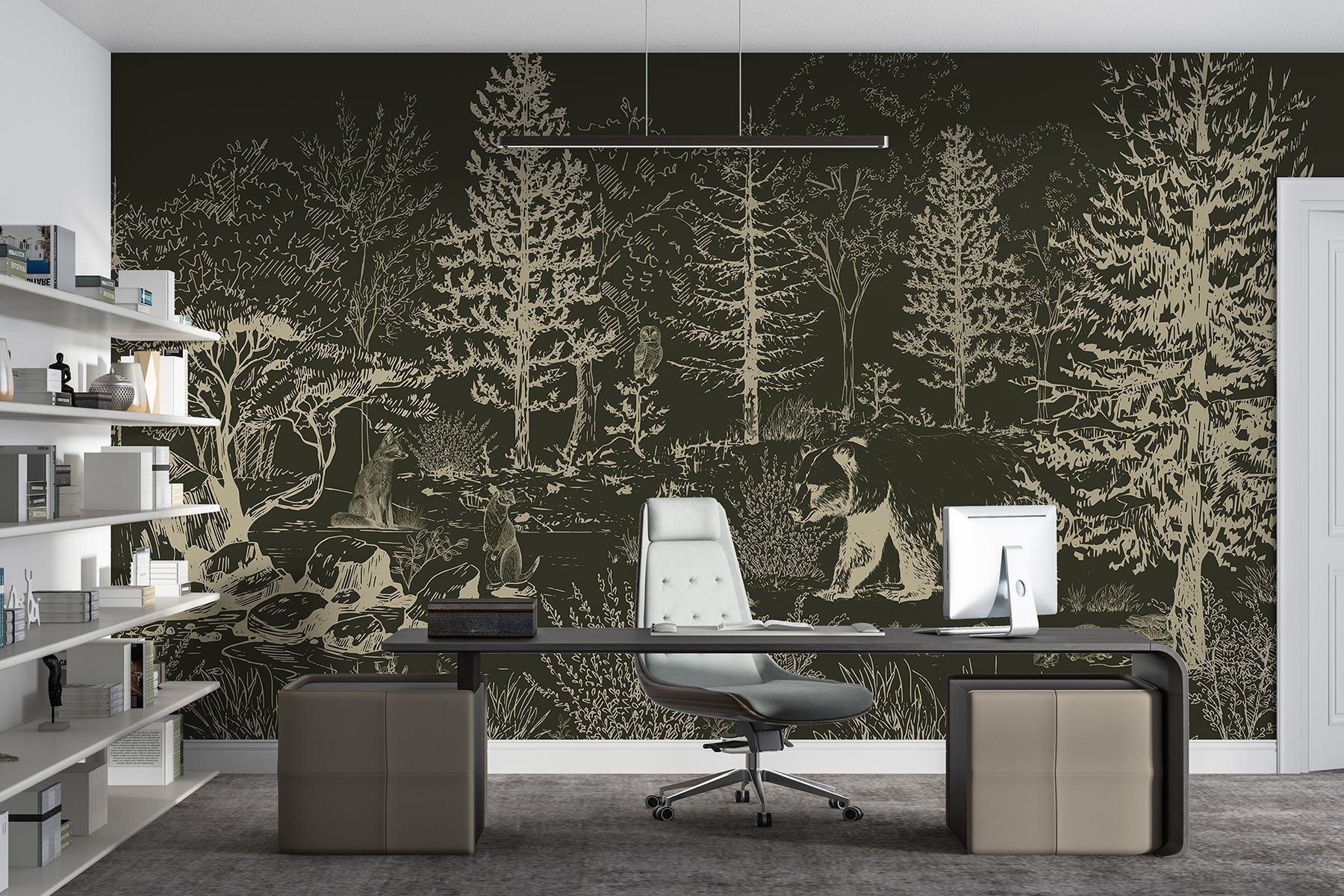 Guardate esattamente come apparirà il vostro spazio con la nuova carta da parati prima di acquistarla. Visualizzazione professionale da parte di designer esperti senza alcun costo o obbligo di acquisto.