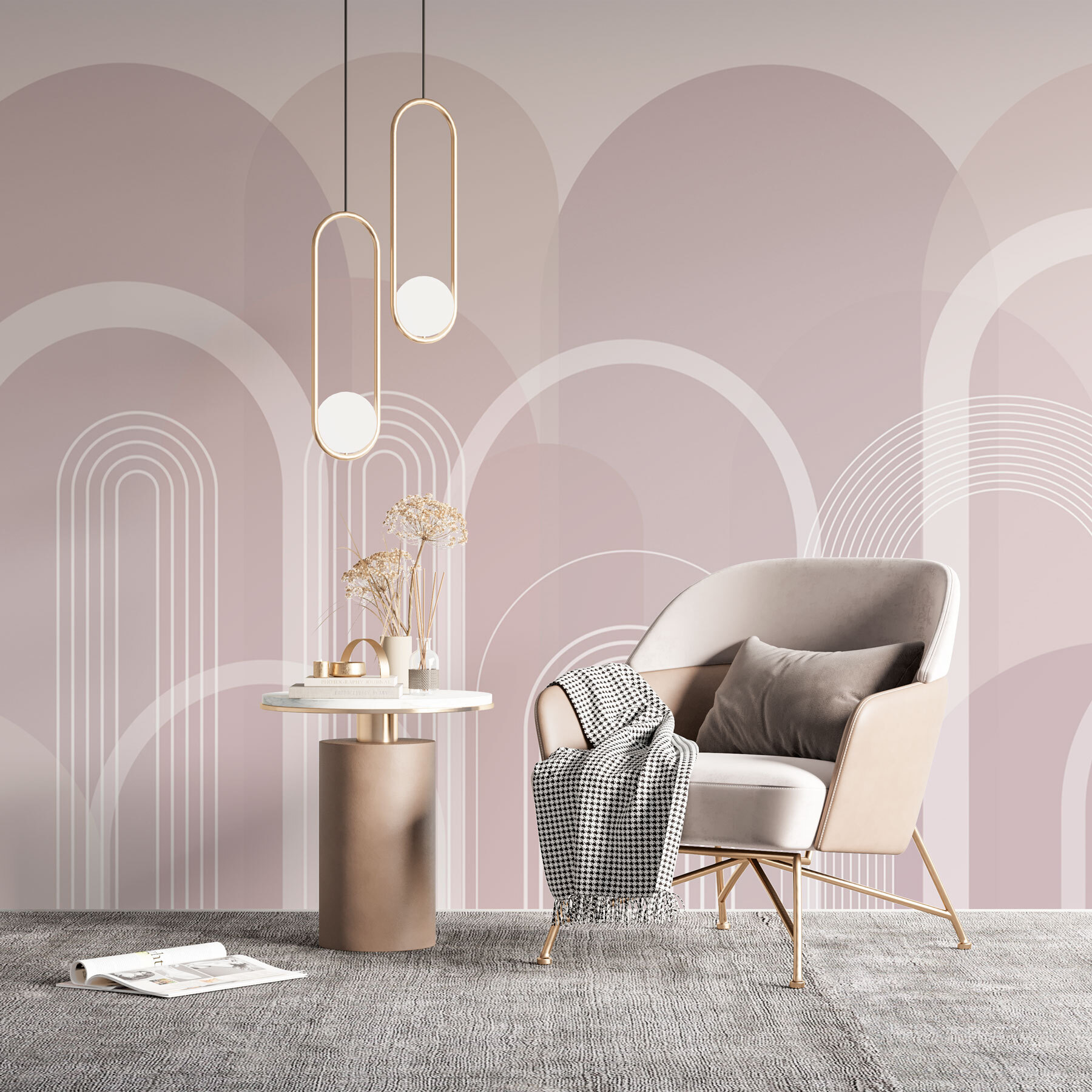 Guardate esattamente come apparirà il vostro spazio con la nuova carta da parati prima di acquistarla. Visualizzazione professionale da parte di designer esperti senza alcun costo o obbligo di acquisto.