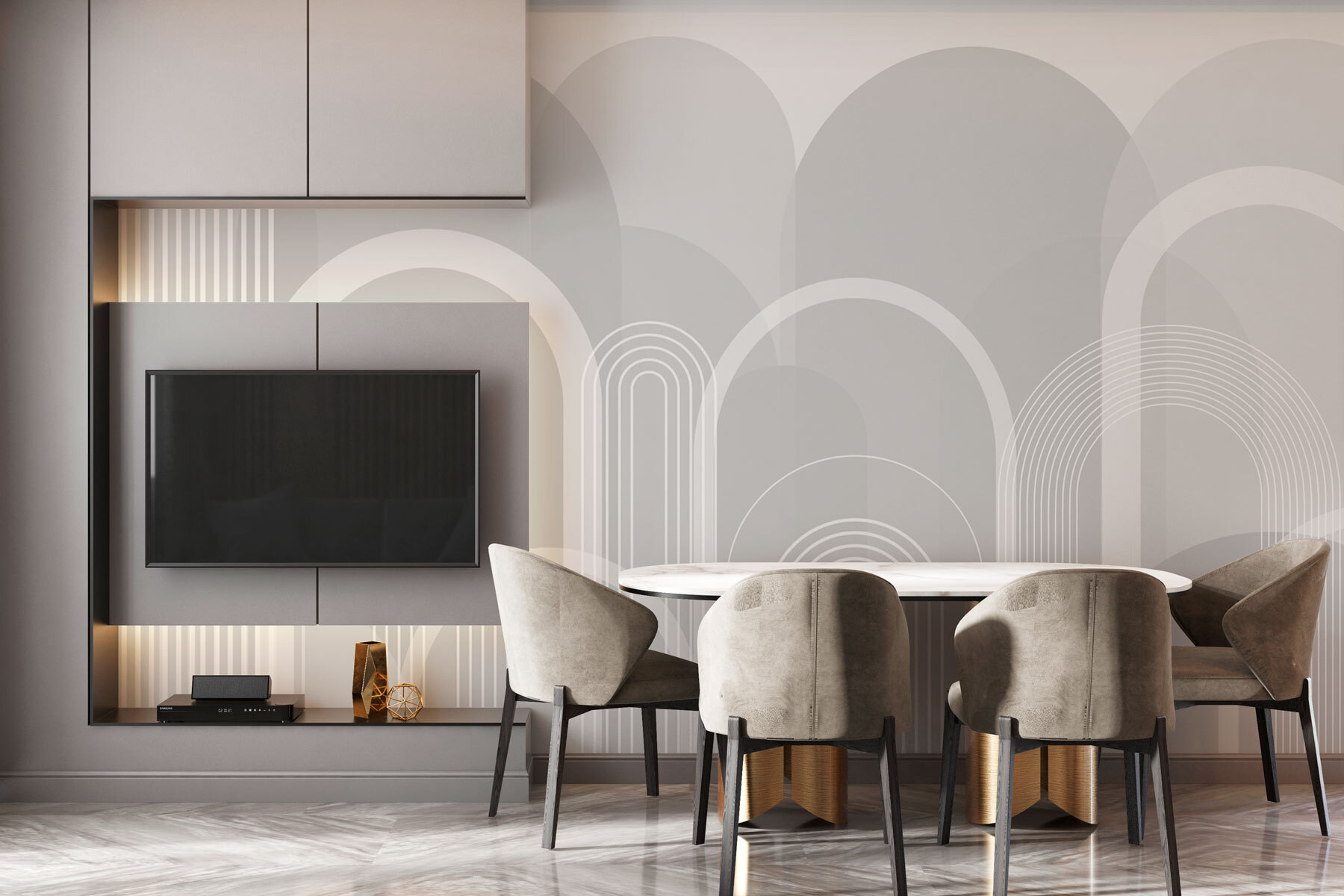 Entrate in un mondo in cui la semplicità incontra lo stile con il “Murale grigio e bianco”. È come una boccata d’aria fresca, pulita, moderna e così chic. Il morbido sfondo grigio si abbina senza sforzo alle linee bianche, creando un’atmosfera rilassante che fa sembrare ogni stanza più spaziosa. Immaginate di sorseggiare un caffè immersi in questo delizioso design. È perfetto per stimolare la creatività o semplicemente per dare un tocco in più al vostro spazio. Inoltre, è come un piccolo segreto perfetto, sottile ma di grande effetto, che spinge i visitatori a chiedersi come sia stato realizzato. Un murale che irradia calma e che si adatta magnificamente a un accogliente angolo lettura o a un ufficio di classe, sussurrando eleganza senza chiedere l’attenzione. Perché accontentarsi di pareti noiose? Questo murale è la soluzione ideale per voi!