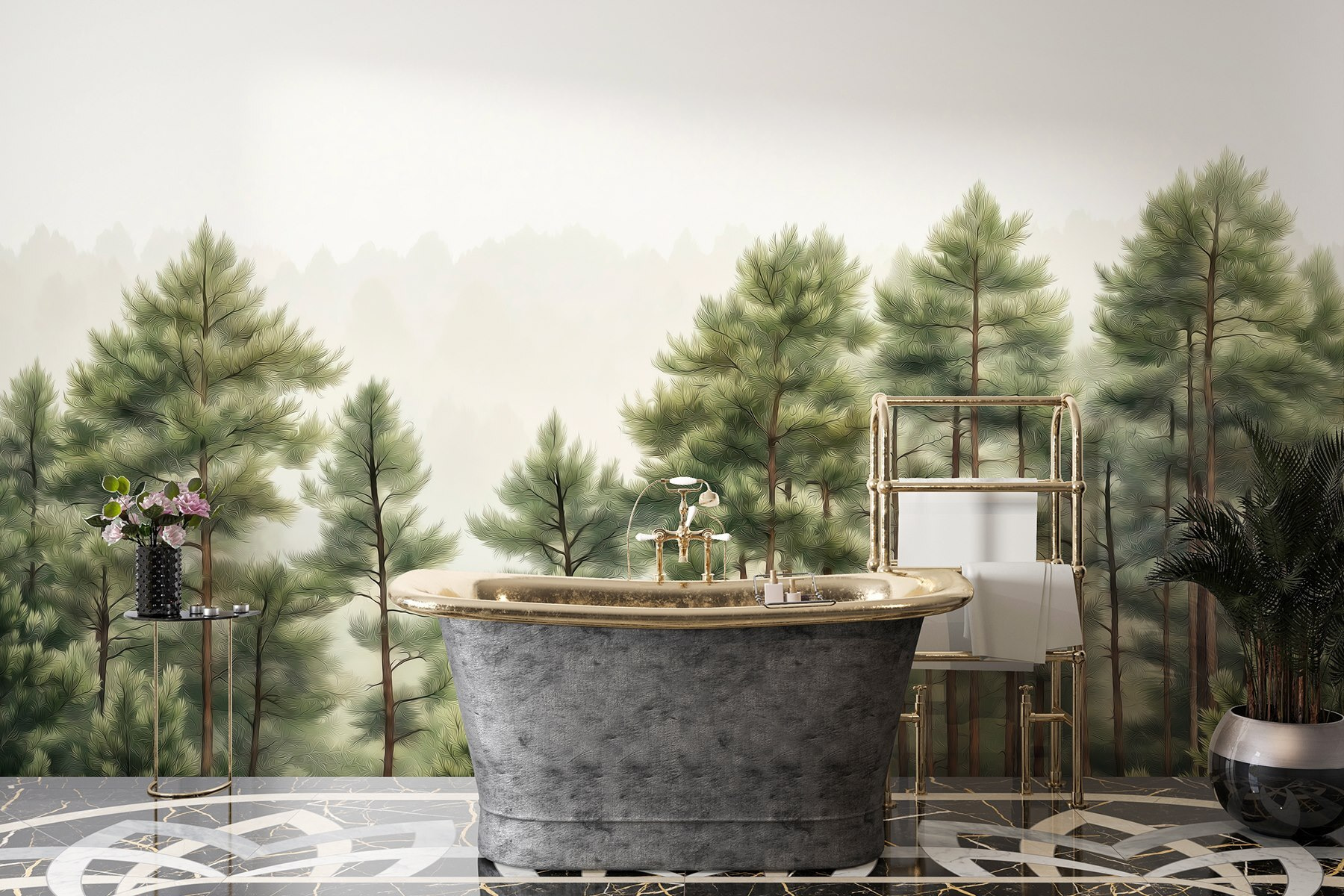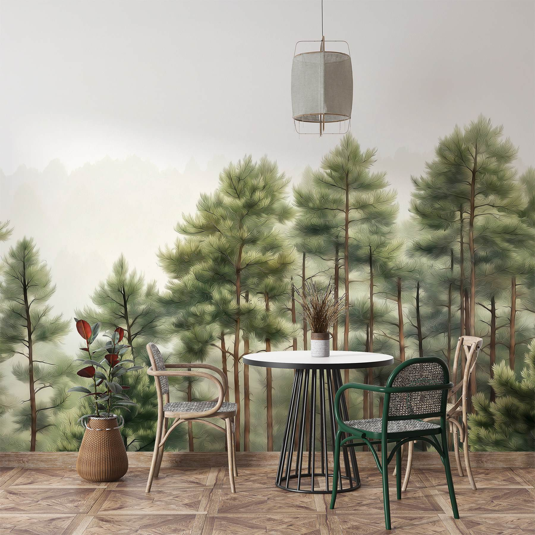 Trasformate il vostro spazio con questo splendido murale, “Gruppo di alberi in una foresta”. Immaginate di svegliarvi ogni mattina con una foresta serena proprio a casa vostra. Immaginate gli effetti calmanti, come un accogliente abbraccio della natura stessa. Il verde tenue e la leggera foschia vi attirano, invitandovi a un senso di pace e tranquillità. È come avere la propria fetta di vita all’aria aperta, senza gli insetti e il fango. Perfetto per creare un accogliente angolo lettura o una rinfrescante parete d’accento. Chi ha bisogno di una vacanza quando si può portare la bellezza della foresta in casa? Aggiungete un tocco di fascino naturale e preparatevi a sognare ad occhi aperti.