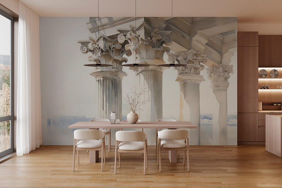 Trasformate qualsiasi spazio in una fuga serena con questo accattivante murale ad acquerello di un grande edificio incorniciato da colonne che ondeggiano dolcemente. È come accogliere un pezzo di architettura morbida e sognante direttamente sulle vostre pareti. Immaginate di sorseggiare un caffè o di accoccolarvi con un libro, sentendovi persi in un tranquillo paesaggio urbano. I toni tenui invitano al relax e alla creatività, perfetti per quei pomeriggi in cui “ho bisogno di un momento”. È un modo artistico per dare un tocco di classe senza troppi fronzoli. Chi avrebbe mai detto che aggiungere stile potesse essere così magico senza sforzo?