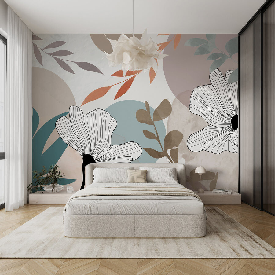 Trasformate il vostro spazio con questo splendido murale caratterizzato da delicati fiori bianchi, foglie marroni e allegri cerchi blu. È come portare un pezzo di natura in casa senza il dramma dell’annaffiatoio. Immaginate di svegliarvi con questo disegno vibrante, in cui morbidi acquerelli danzano insieme, creando un’atmosfera rilassante, perfetta per sorseggiare il caffè del mattino o per fare un piccolo pisolino pomeridiano. È un’atmosfera fresca e artistica che può far sentire qualsiasi stanza come un’accogliente galleria d’arte. L’aggiunta di questo murale è un modo rapido per dare vita a una parete spenta e per creare un po’ di gioia: chi non la vorrebbe?