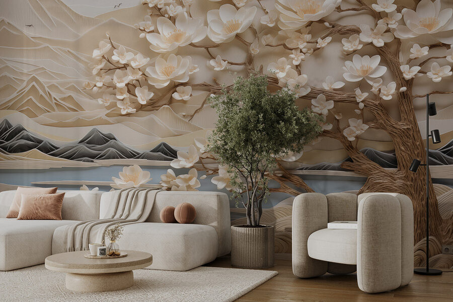 Trasforma il tuo spazio con questo incantevole murale raffigurante un albero adornato da delicati fiori bianchi sullo sfondo di maestose montagne. È come portare un pezzo di natura in casa, senza il fastidio del giardinaggio. Immagina di svegliarti davanti a questo scenario sereno, dove i colori tenui sussurrano tranquillità e un pizzico di mistero. I petali sembrano danzare nella brezza, invitando a sognare ad occhi aperti e a godersi momenti di pace. È perfetto per qualsiasi stanza che desideri un tocco di eleganza, che si tratti di un angolo accogliente o di un vivace soggiorno. Immagina di avere una tazza di tè in mano, di guardare quelle montagne e di sentirti come se fossi entrato in un tranquillo giardino giapponese, tutto all’interno delle tue mura. Questo è il tipo di arredamento che ti fa sorridere!