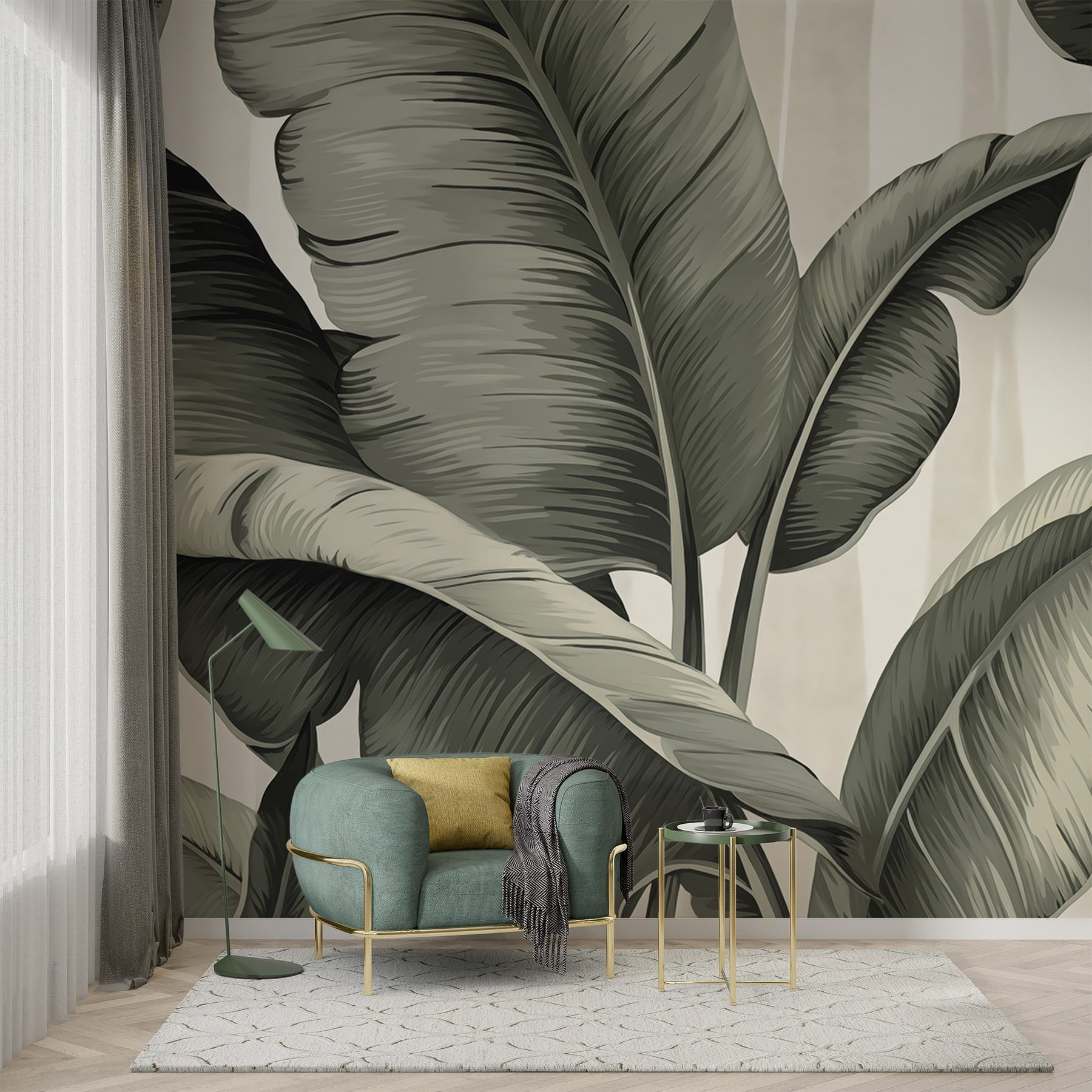 Trasforma qualsiasi spazio in un paradiso tropicale con “Nature’s Art in Graceful Foliage”. Questo murale non è solo un semplice elemento decorativo: sussurra storie di brezze calde e vegetazione lussureggiante. Immagina di sorseggiare una bevanda fresca, avvolto dal dolce abbraccio dei motivi fogliati che danzano sulle tue pareti. I toni monocromatici del verde creano un’atmosfera rilassante, invitandoti a distenderti come se fossi sdraiato sotto una palma in un pomeriggio soleggiato. È perfetto per ravvivare una stanza spenta o aggiungere un tocco di fascino naturale al tuo arredamento. Chi avrebbe mai detto che il fogliame potesse essere così chic?