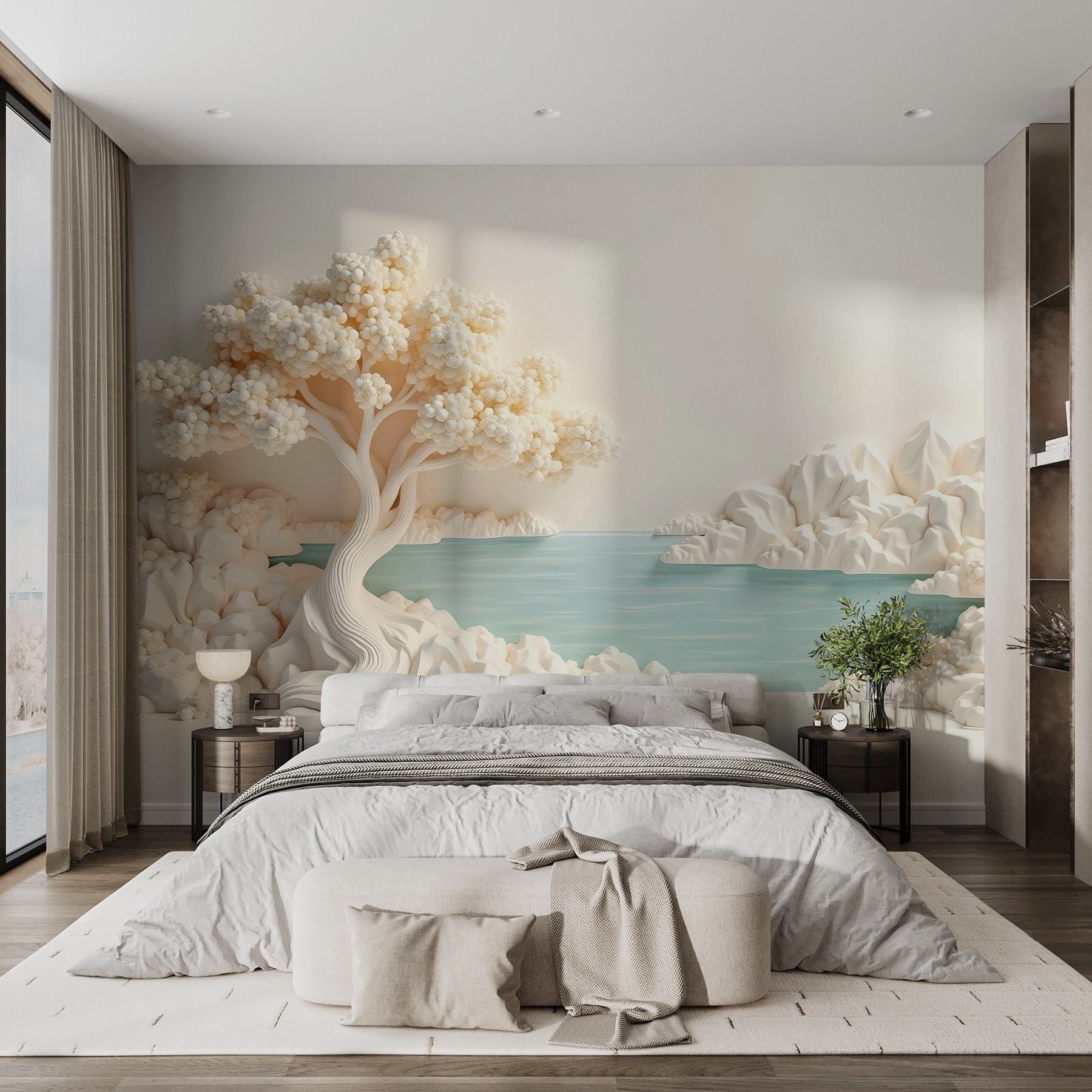 Trasformate il vostro spazio con il delizioso “Carta da parati White Tree and Water”. Questo splendido murale porta un’atmosfera serena in casa vostra, mostrando un albero splendidamente realizzato che sembra quasi sussurrare i segreti della natura. Immaginate di sorseggiare il vostro caffè mattutino ammirando le acque tranquille: è come una piccola fuga dalla frenesia.